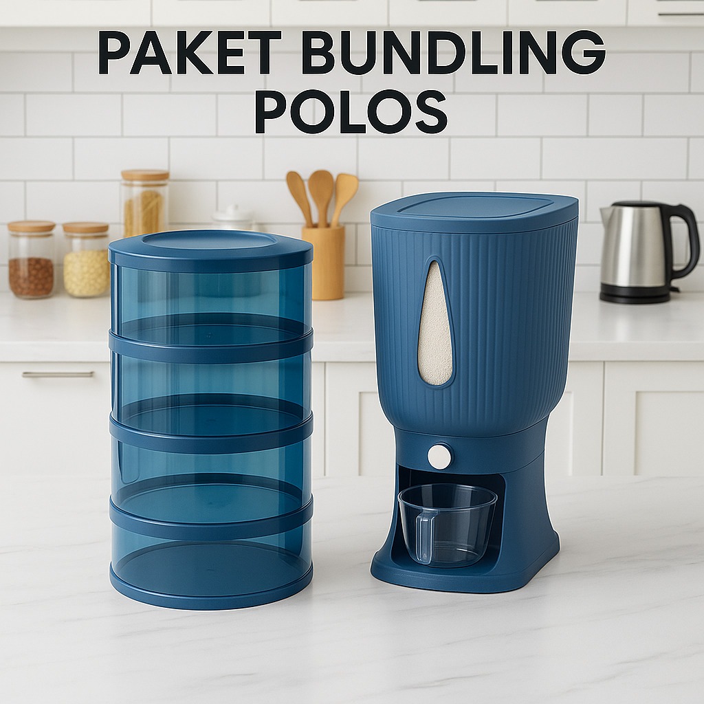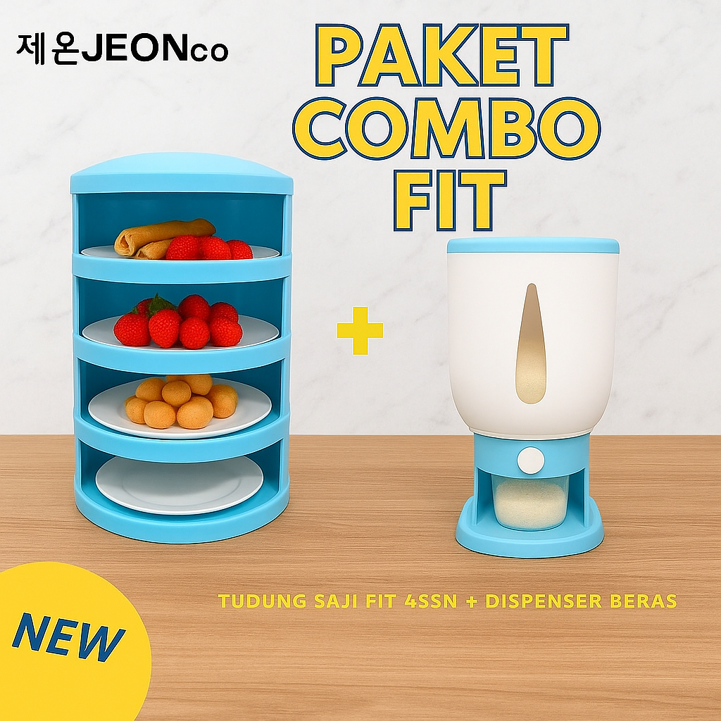 PAKET HAMPERS COMBO FIT Dispenser Beras 10 KG + Tudung Saji FIT 4 Susun Tempat Penyimpanan Makanan