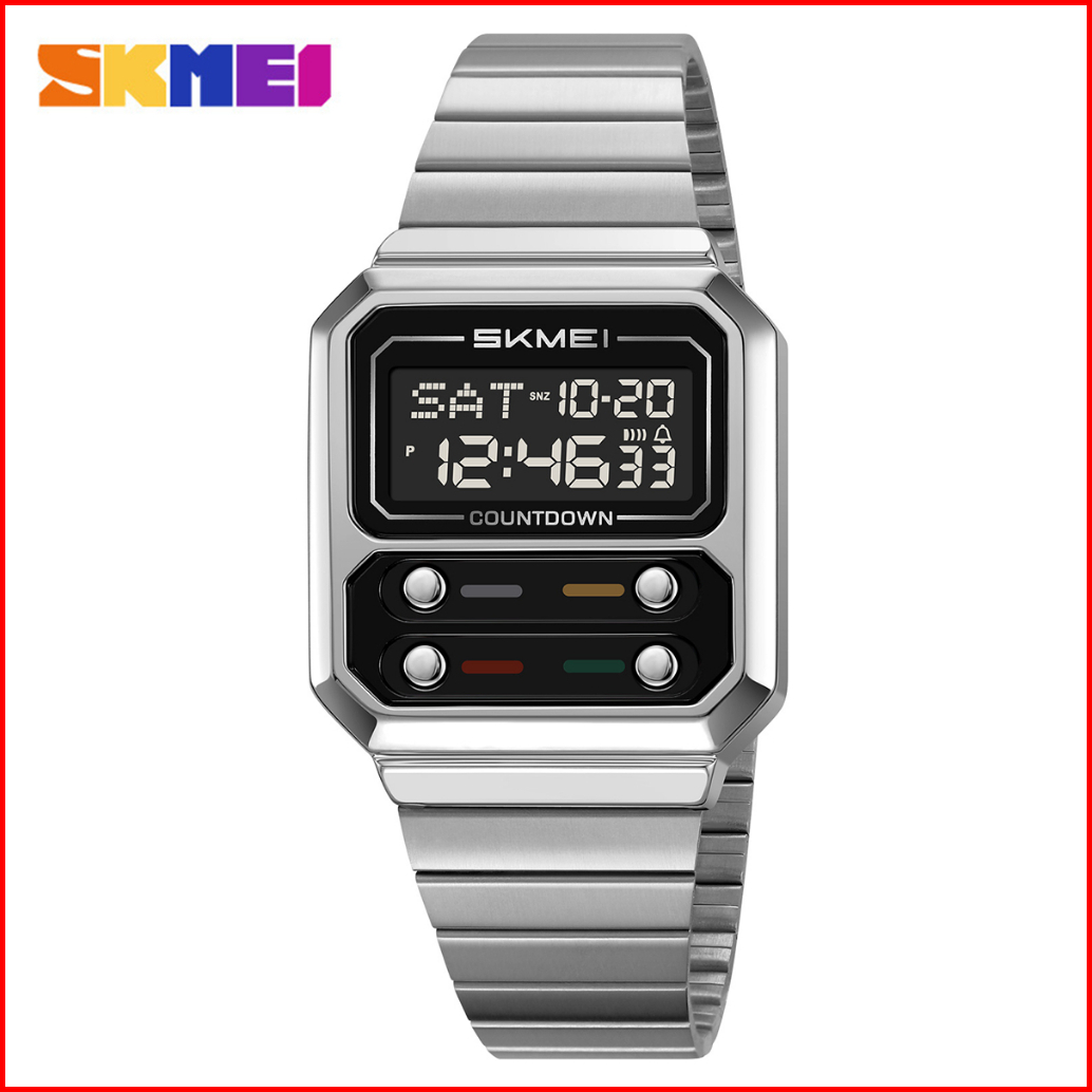 Skmei 2448 Jam Tangan Pria Digital Dual Time Tali Stainless Tahan Air Mgos