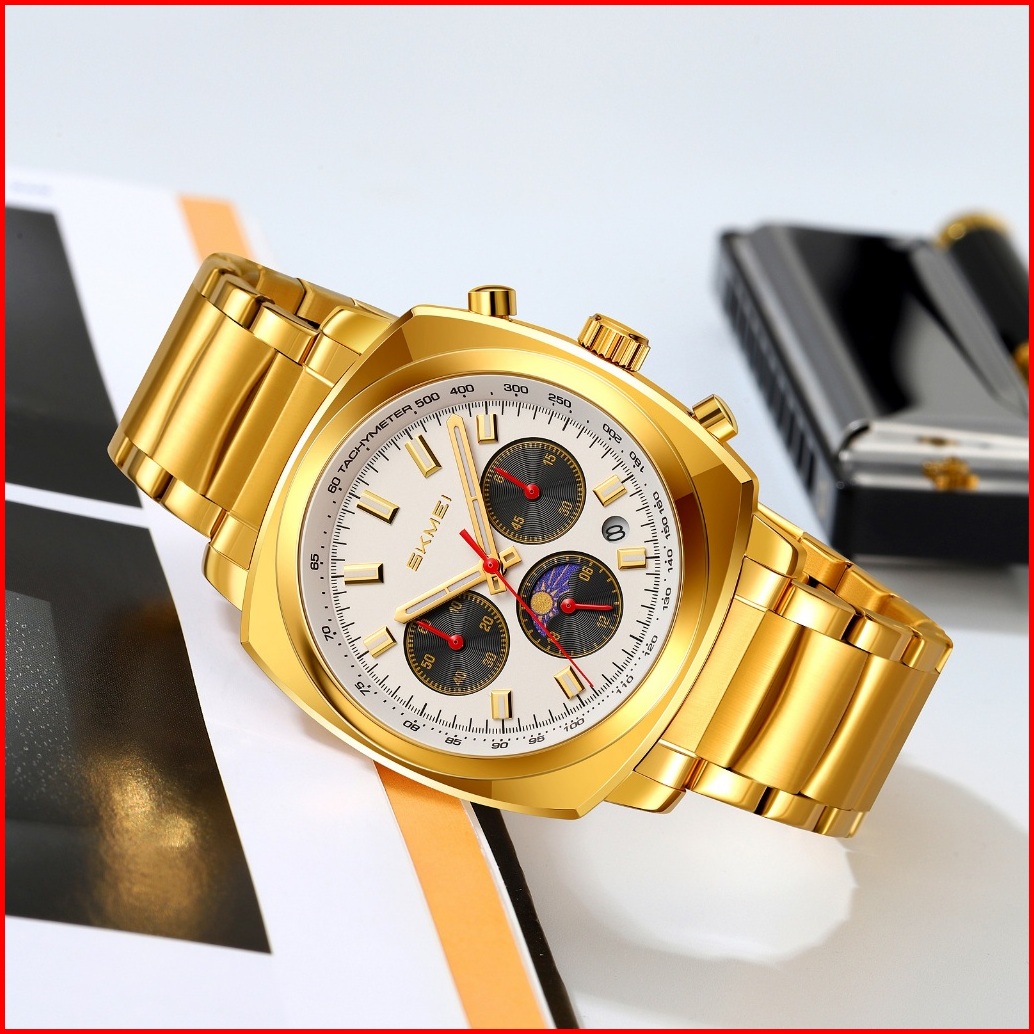 Skmei 9360 Jam Tangan Pria Analog Chronograph Tali Stainless Mgos