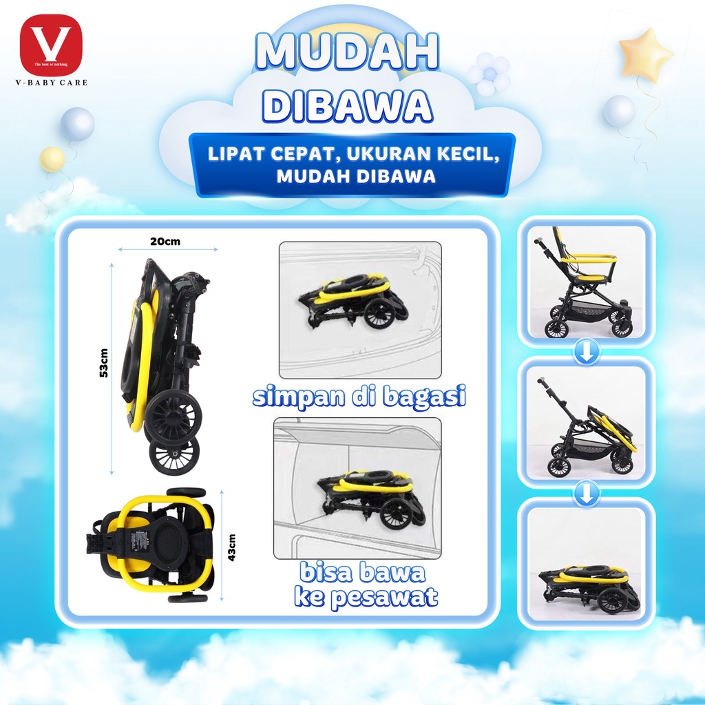 V-BABYCARE Stroller Baby / stroller dua arah / stroller lipat /Kereta Dorong Balita Lipat Magic Stroller Baby 2 Way Trav