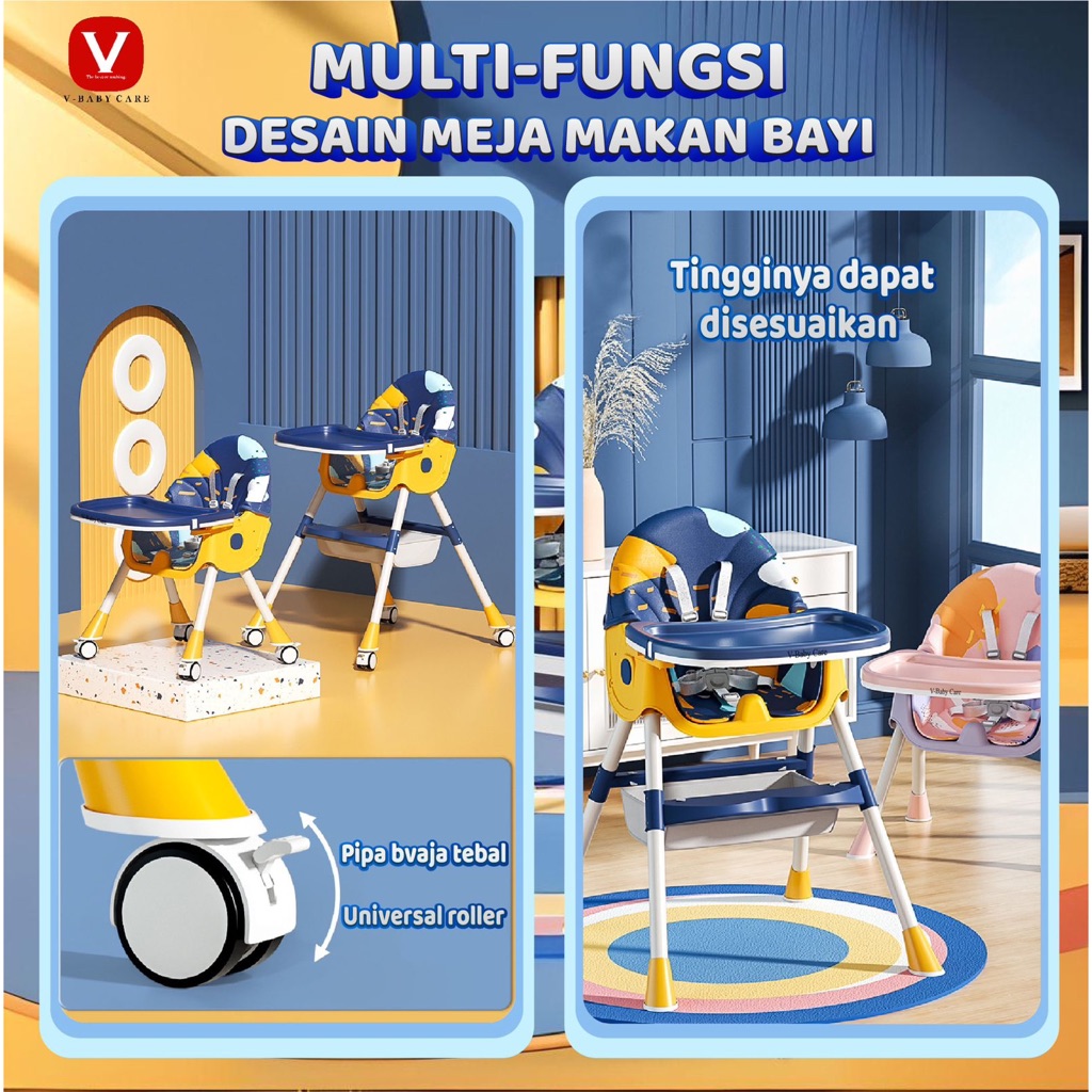 V-BABY CARE Kursi makan anak balita/Kursi makan bayi /kursi makan balita multifungsi/baby chair multifungsi/kursi makan