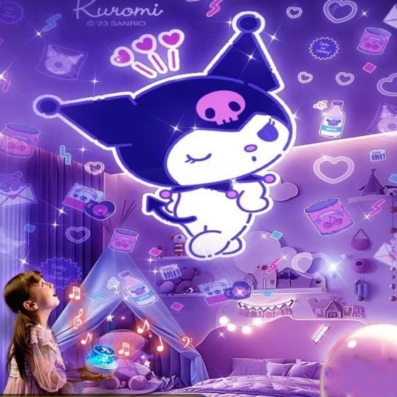 Lampu Tidur Proyektor Rotasi Kuromi+3 Warna +12 Set Pola / Langit Malam Berbintang Kamar Aesthetic Tidur Lucu