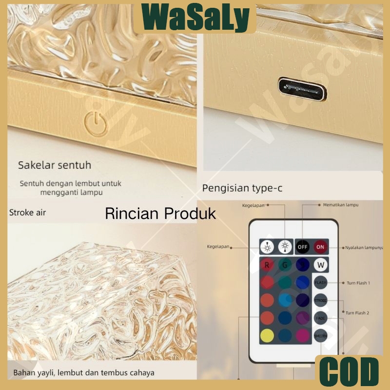 16 Warna Lampu Crystal Meja Tidur Remote Control Rgb Rgb / Pencahayaan Sekitar Riak Air Persegi / Tidur Romantis Aesteti