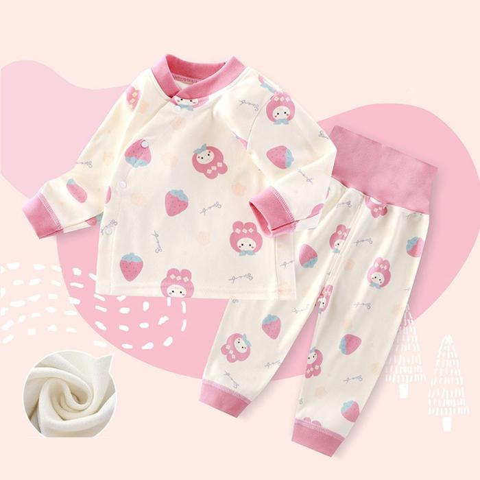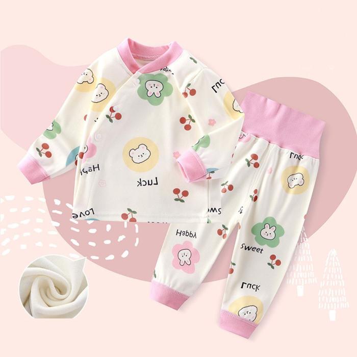 SETELAN PIYAMA BAJU BAYI/BAJU TIDUR PIYAMA BAYI/SLEEPSUIT BAYI MOTIF LUCU KATUN - PINK LUCK, 6-12 BULAN