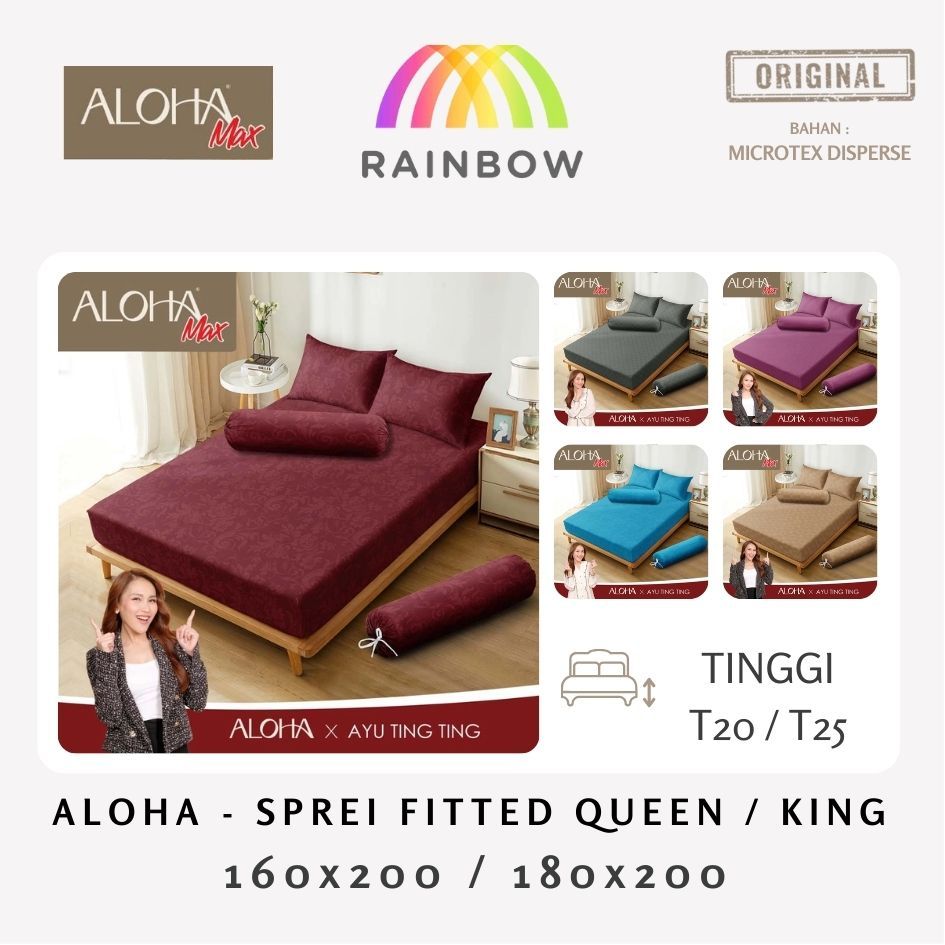 Aloha - Sprei Fitted T20 / T25 Queen / King (160X200 / 180X200) Tinggi 20 / Tinggi 25 Polos Embossed Official Terlaris P