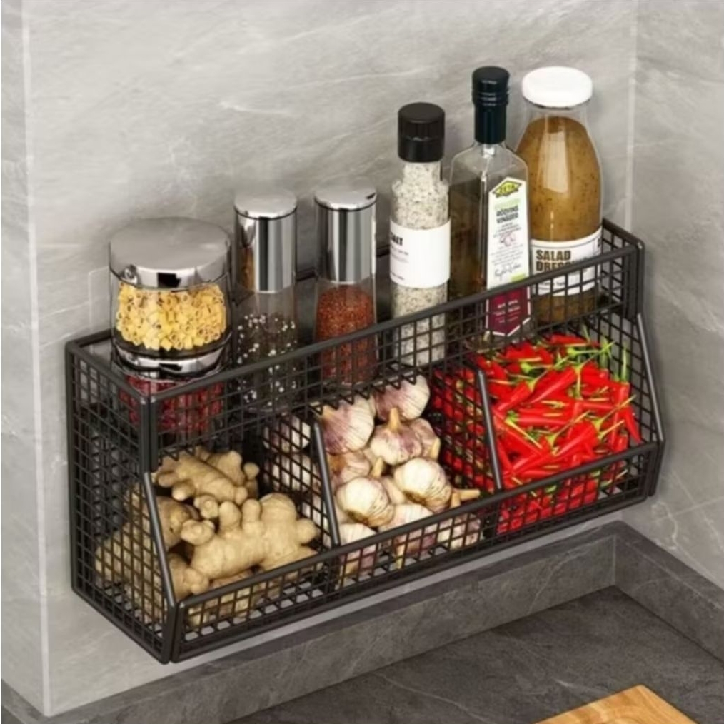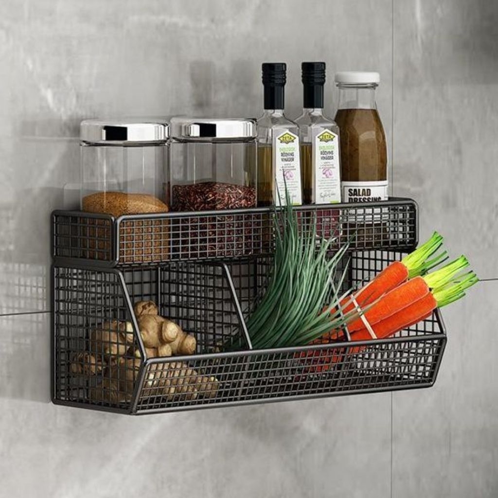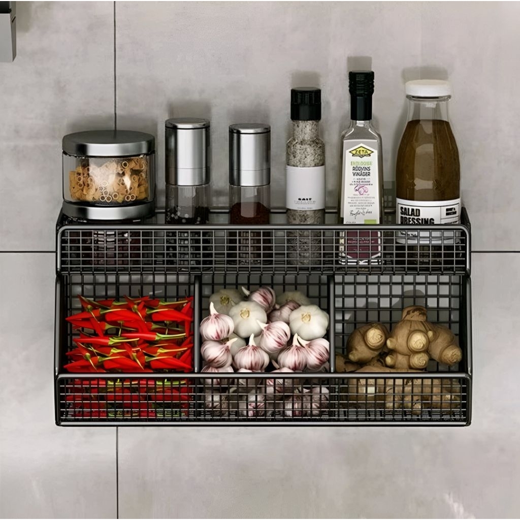 Rak Dapur Jaring Besi Sekat Trapesium untuk Bumbu Bawang Toples + Tempelan