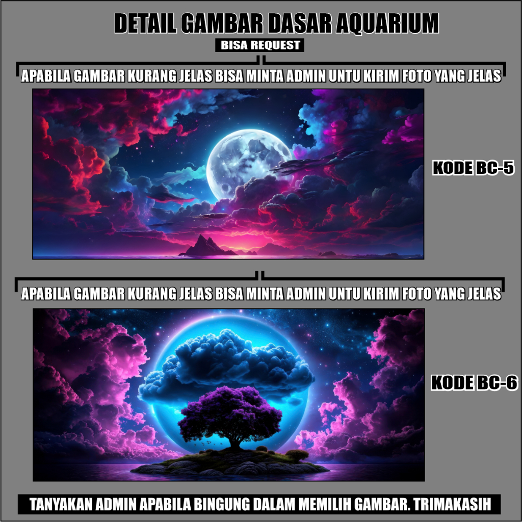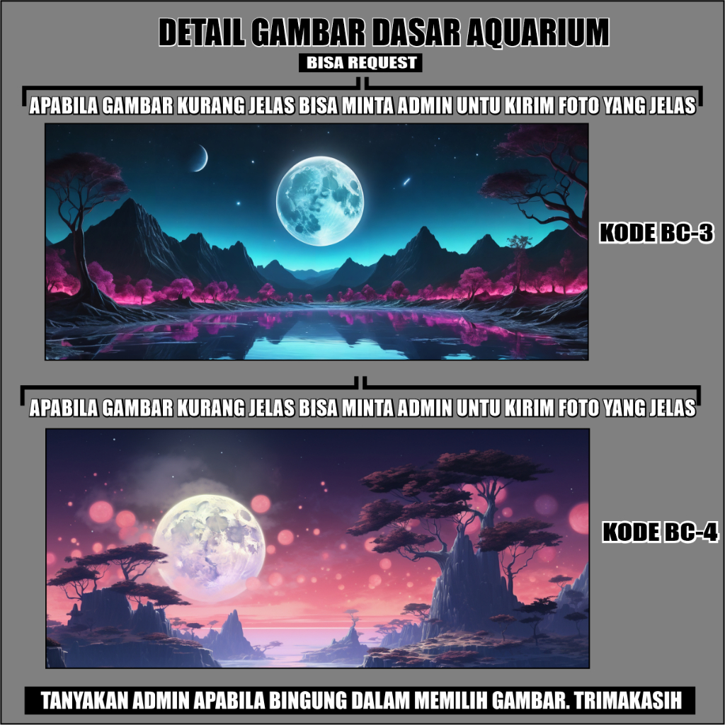 Background Aquarium Stiker Hiasan Wallpaper Aquascape Skotlet Sticker Vinyl Premium Tema Bulan 3D