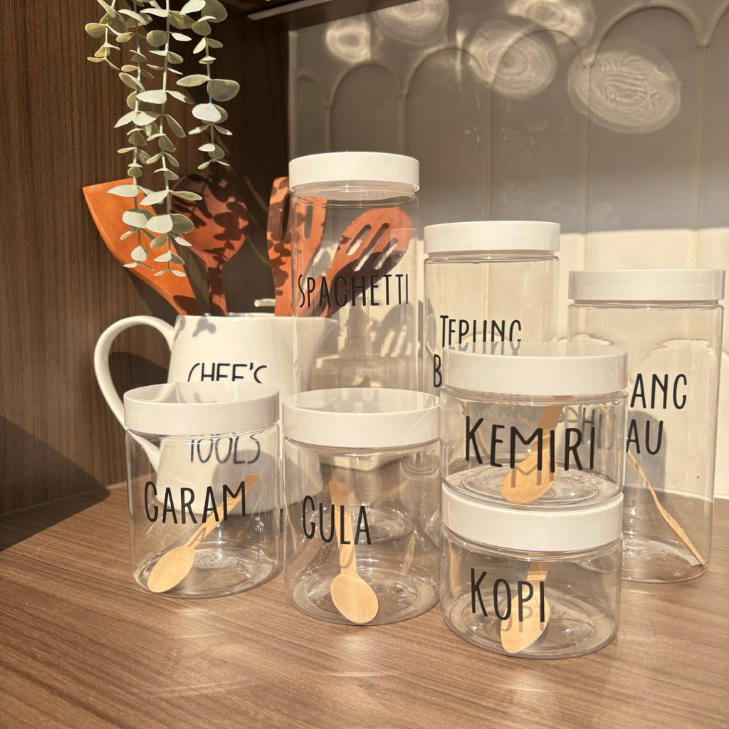 (Free Sendok Kayu) Anischa Toples Bumbu Dapur Tutup Putih Toples Estetik Free Stiker Cutting (EA htm)