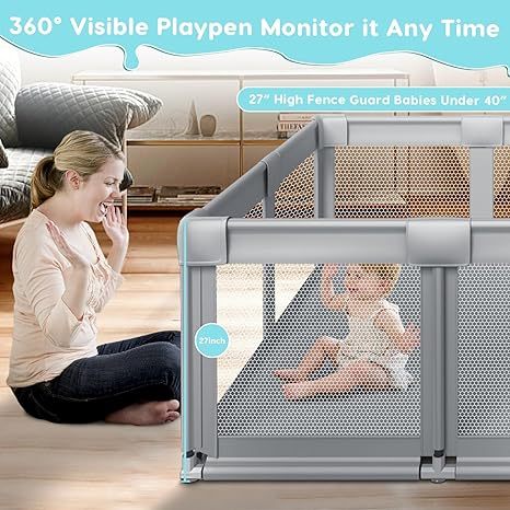MPH Kandang Bayi Besar, Tempat Bermain Bayi untuk Bayi dan Balita, Kandang Bermain Pagar Bayi untuk Dalam & Luar Ran, Te