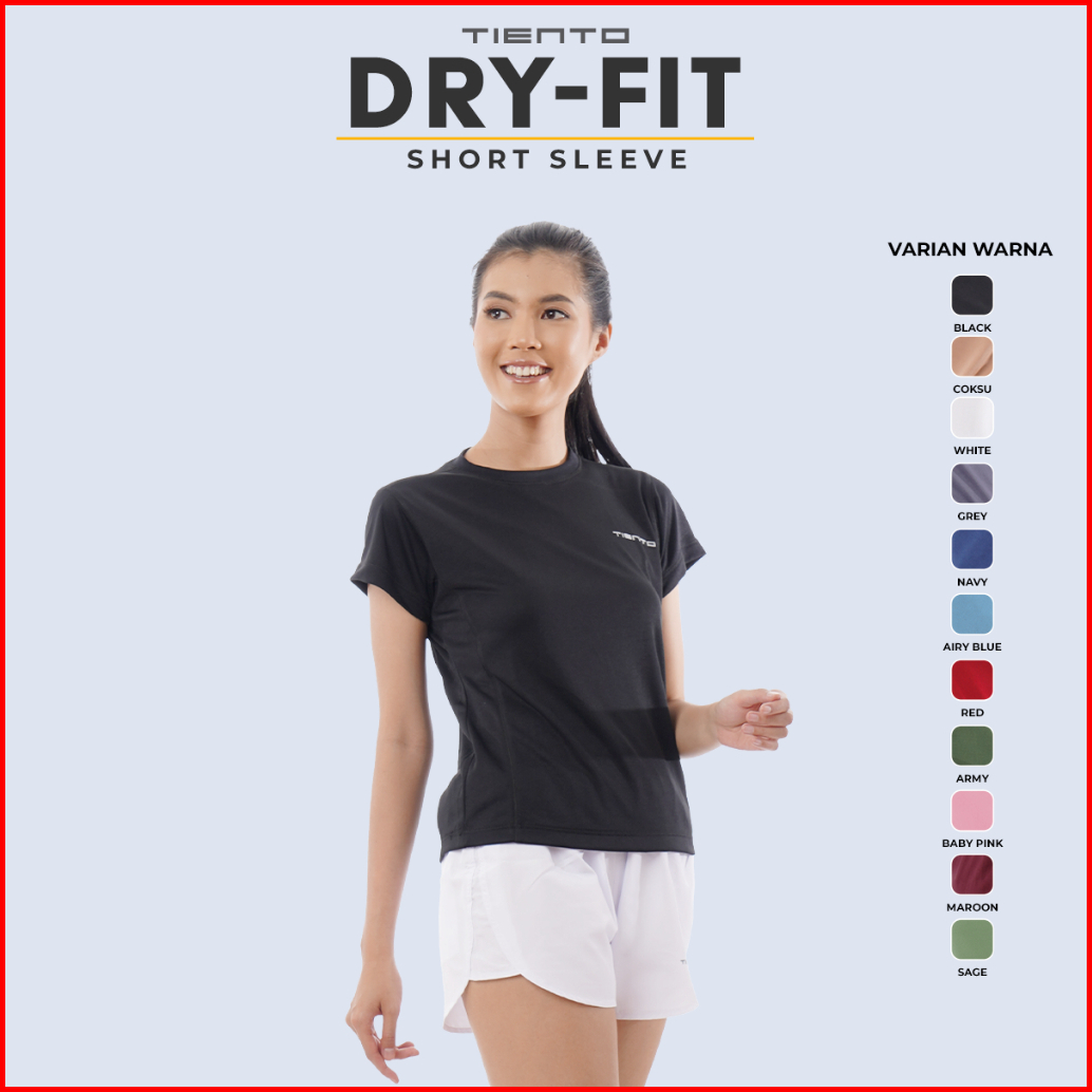 Tiento Kaos Running Dry Fit Baju Olahraga Lari Wanita Gym Pakaian Sport Lengan Pendek