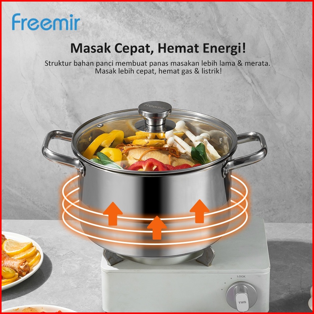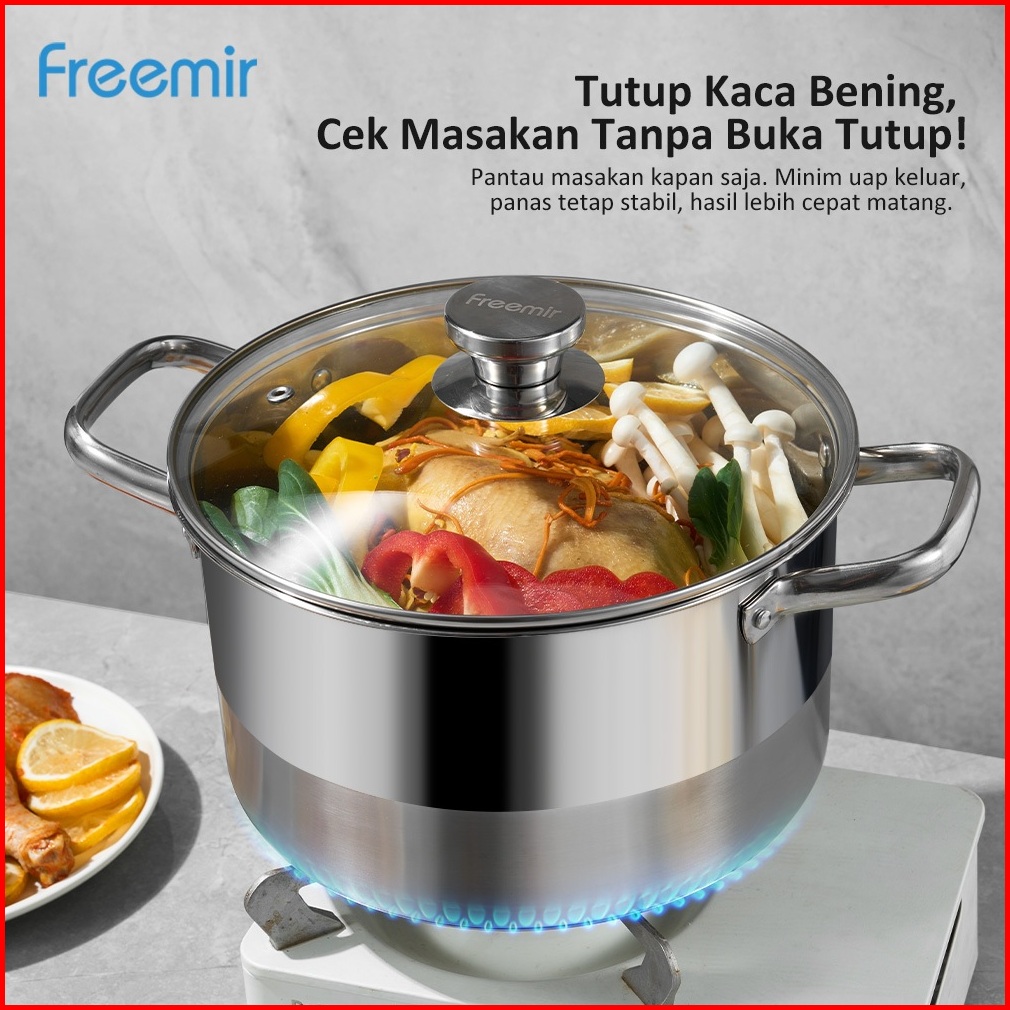 Special Freemir Panci Sup Stainless Steel 304 Double Bottom 26cm Goreng Rebus Premium 0-coating
