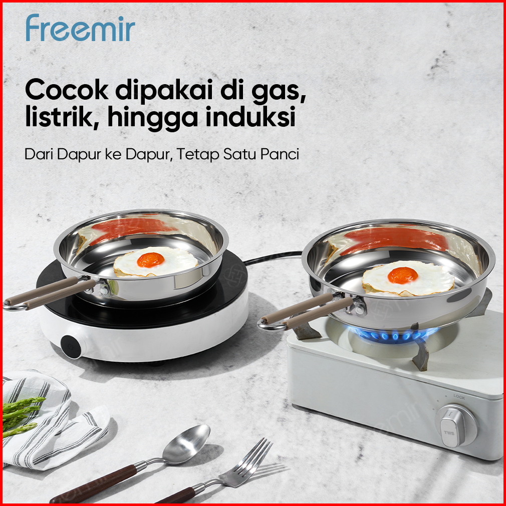 New Special Freemir Set Api-wajan Penggorengan 20cm Sus304 Panci Anti Lengket Mudah Dibersihkan Pegangan Anti-panas Panc