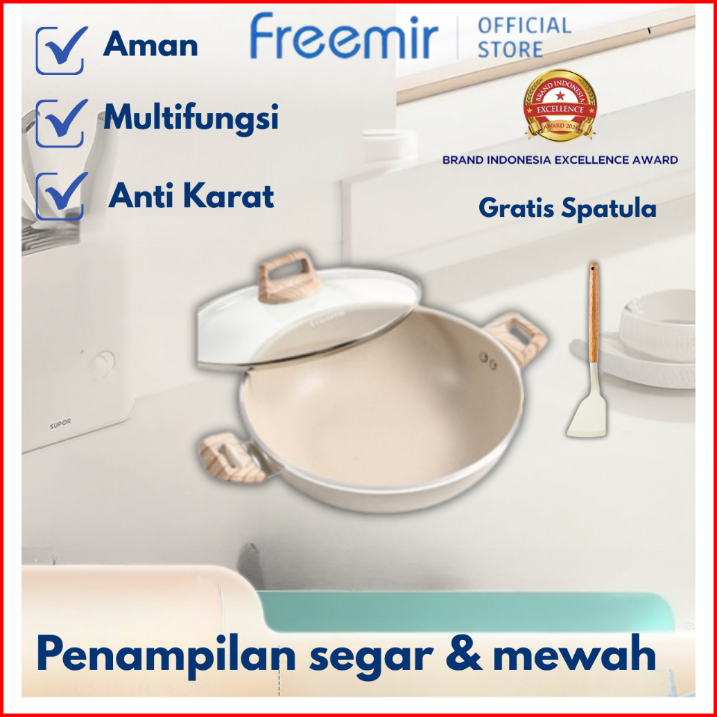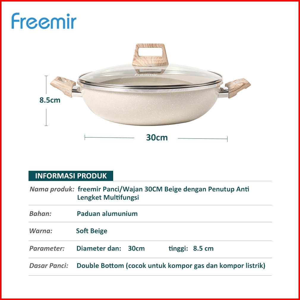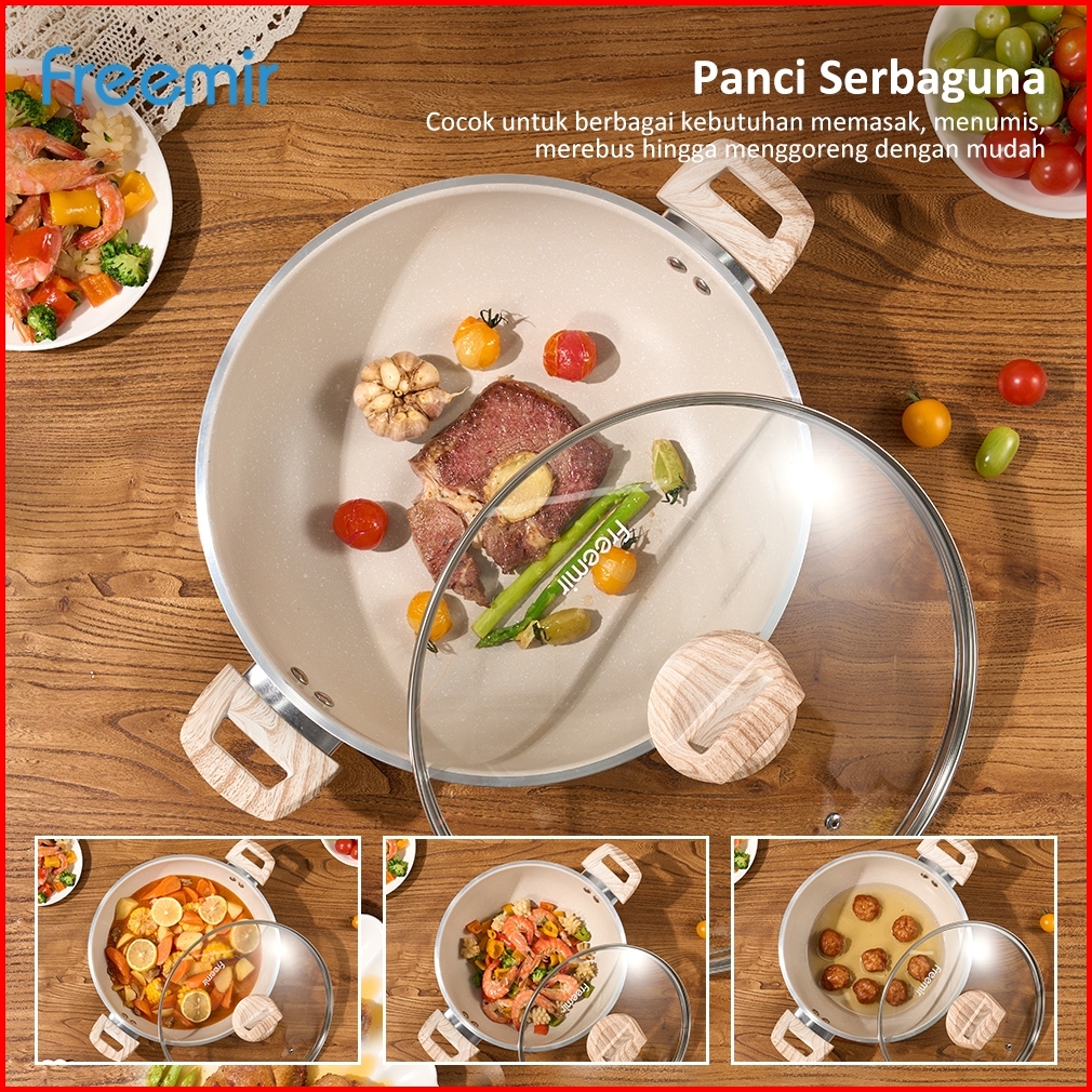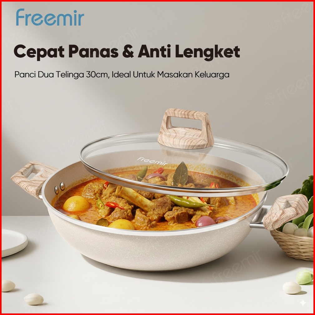 Freemir Wajan Panci Jumbo 30 Cm Double Bottom Dan Tutup Kaca Anti Lengket Granit