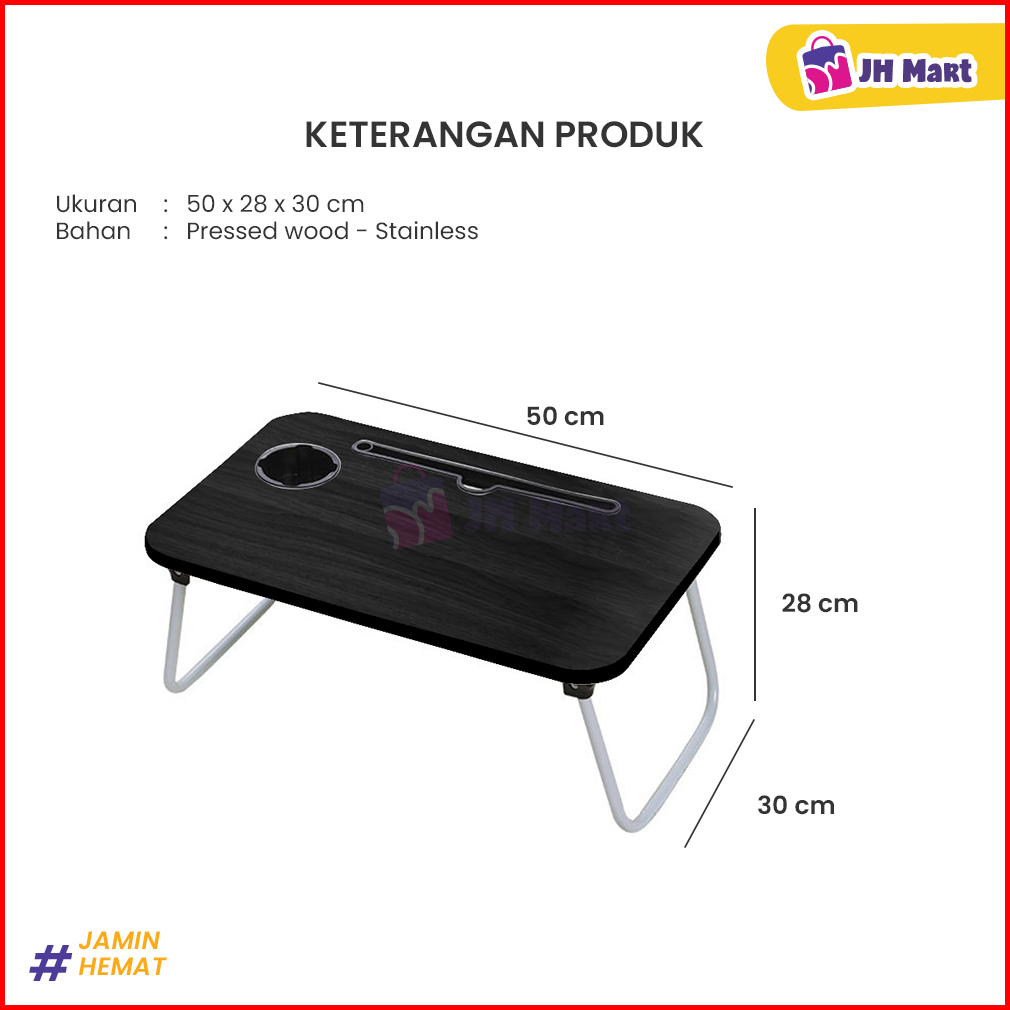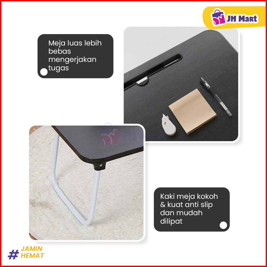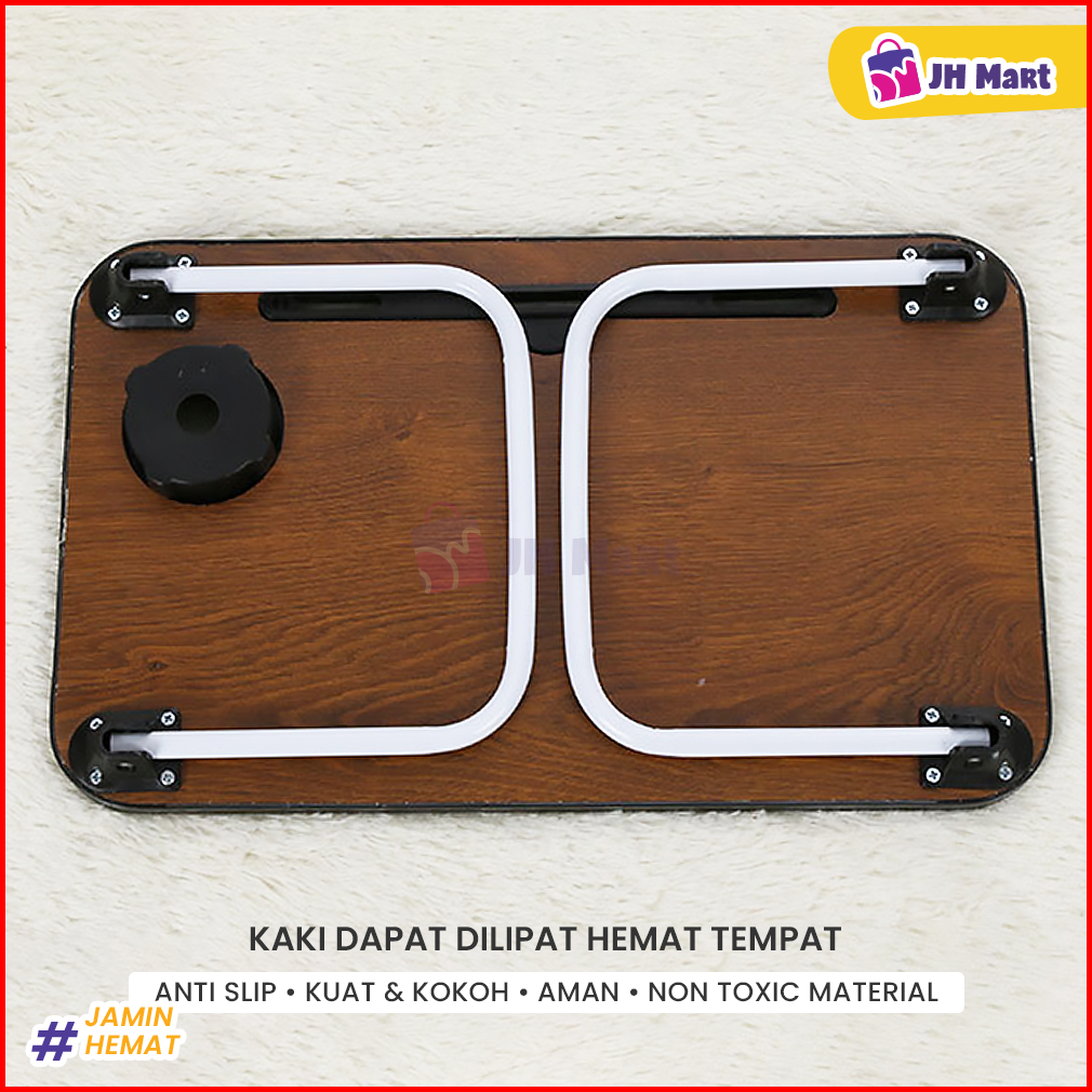 Jhm - Meja Belajar Laptop Portable Lipat Lesehan Serbaguna Kayu Hpl Kaki Besi