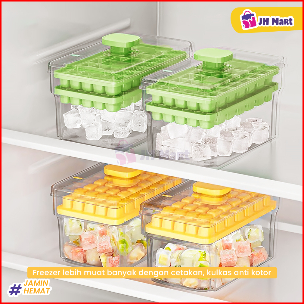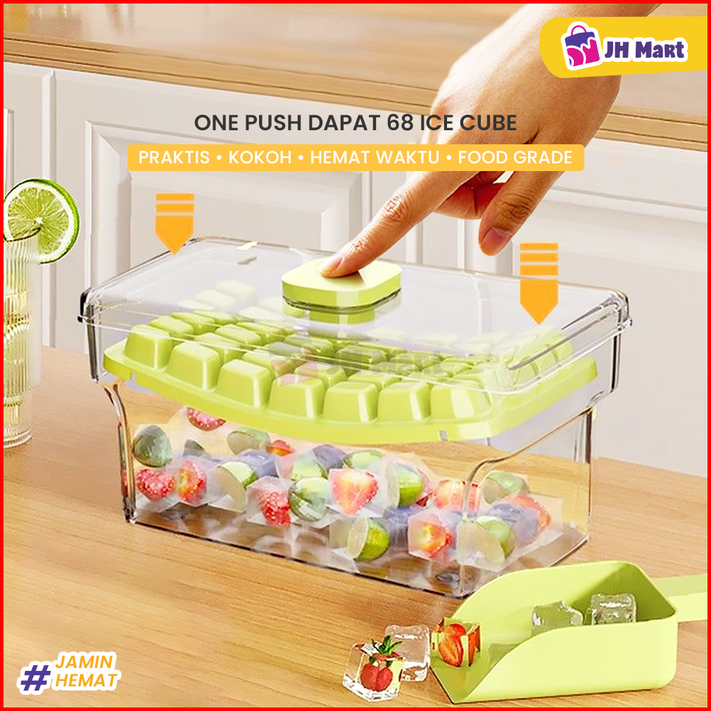 Jhm - Cetakan Es Batu Otomatis Kotak Ice 34 Grid Press Handle Sekali Tekan