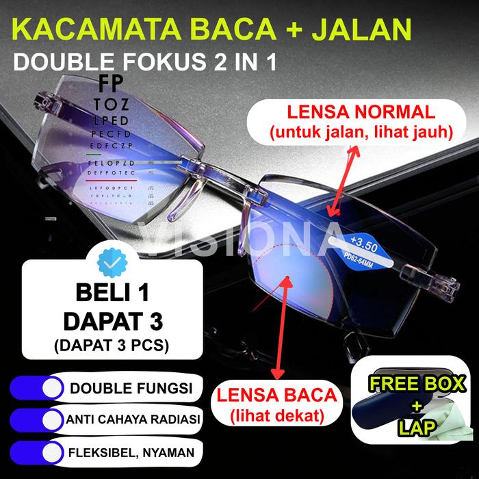 (BELI 1 DAPAT 3 PCS) Kacamata Baca Plus Dan Jalan Pria Wanita Orang Tua Anti Radiasi - 37-44 TAHUN +1.00