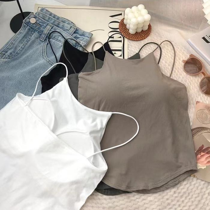 Ninabobo BR214 Tanktop Kekinian Tali Kecil Bersama Bra Busa Tangtop Crop Top Wanita Sport Bra Olahraga - Hitam