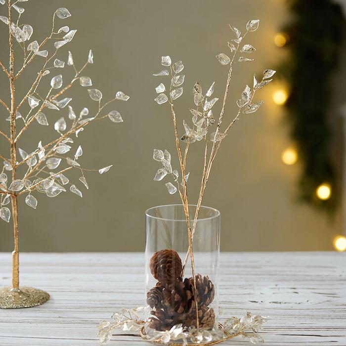 Bunga Hiasan Crystal Branch Dekroasi Natal Daun Christmas Leaf Flower - long