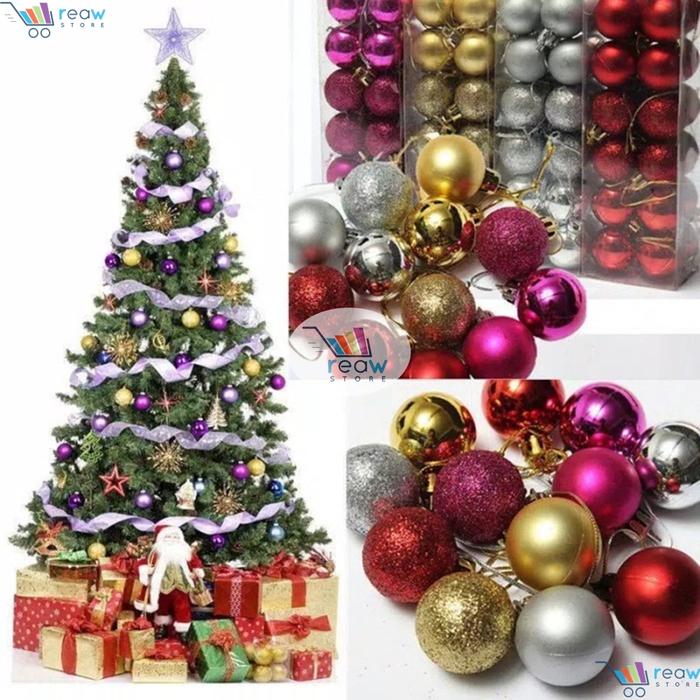 Bola Natal 5cm Isi 12pcs Hiasan Gantungan Dekorasi Ornamen Pohon Natal Merry Christmas Tree - Gold