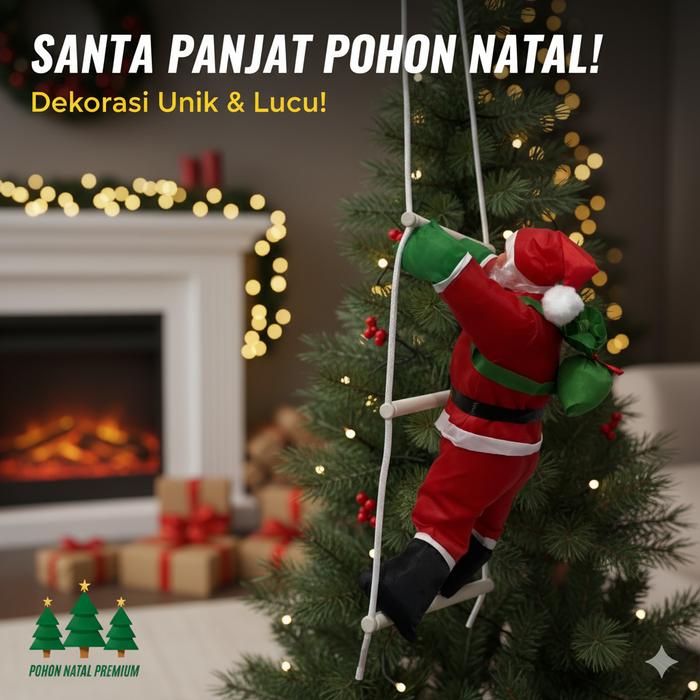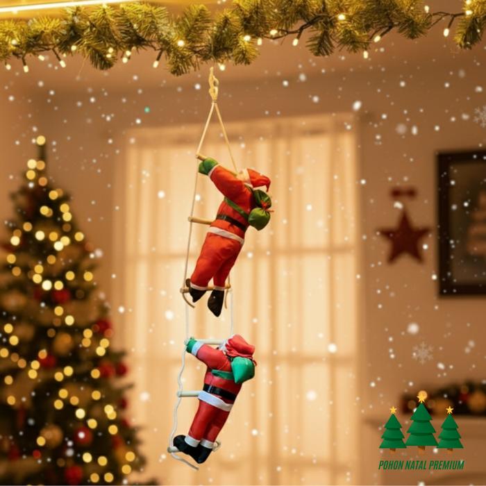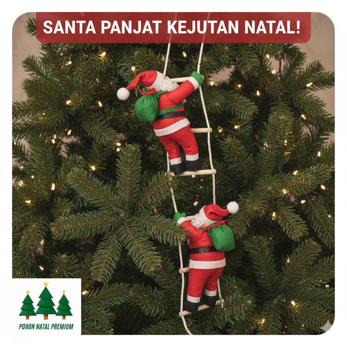 Boneka Santa Claus Panjat Tangga Hiasan Dekorasi Pohon Natal Unik - 2 Santa Size Sedang