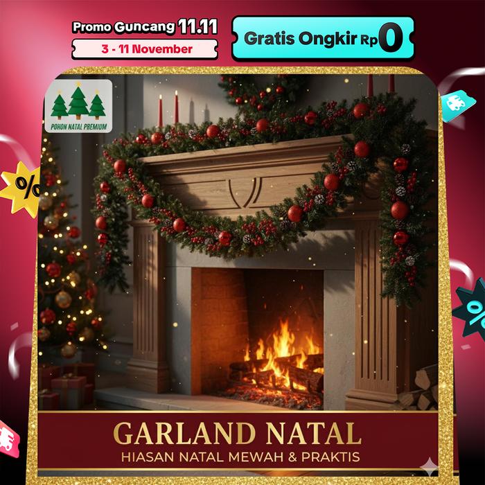 Garland Natal Premium Lengkap Dengan Hiasan Dekorasi Christmas Pintu Dinding Tangga Aesthetic