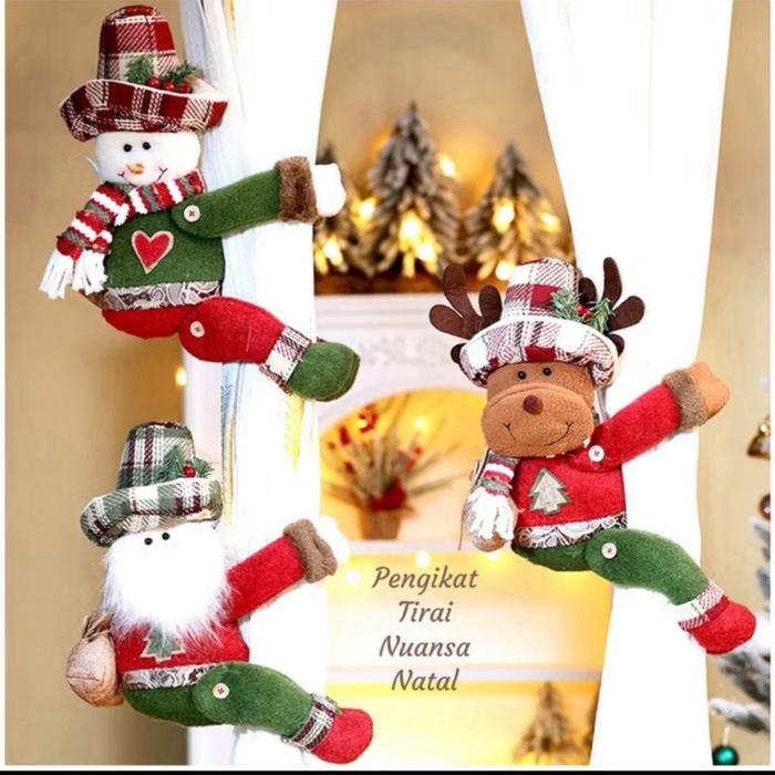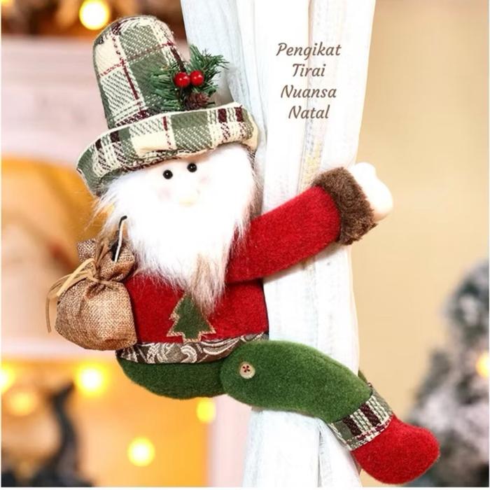 Pengikat Tirai Nuansa Natal MOTIF BARU Hiasan Natal Dekorasi Natal Chritsmas Decoration - SANTA TOPI PENGIKAT TIRAI