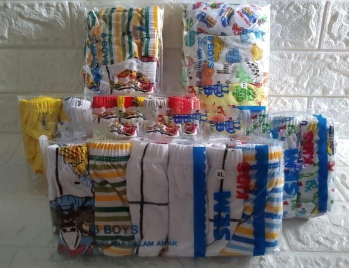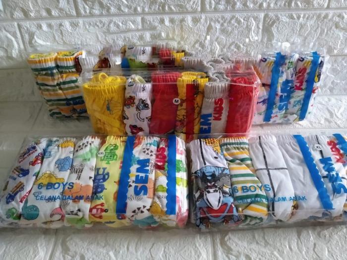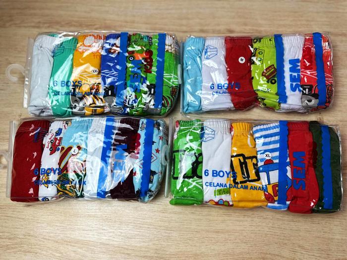 Terlaris 1 Dompet Isi 6 Pcs CD SEM Kids - Celana Dalam Anak Laki - Random Motif Pakaian Fashion - M Elegan