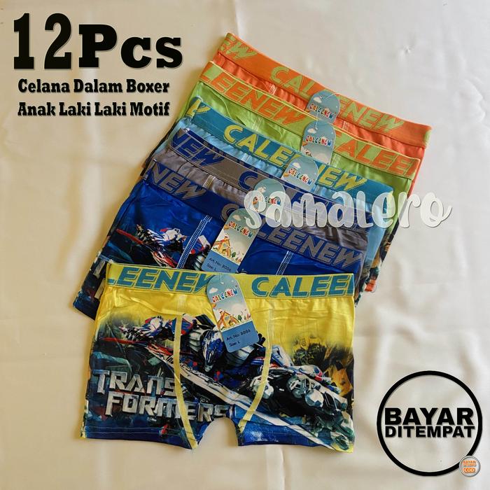 Murah { PROMO 12 PCS } Boxer Anak Laki Motif - 12 Pcs M Elegan