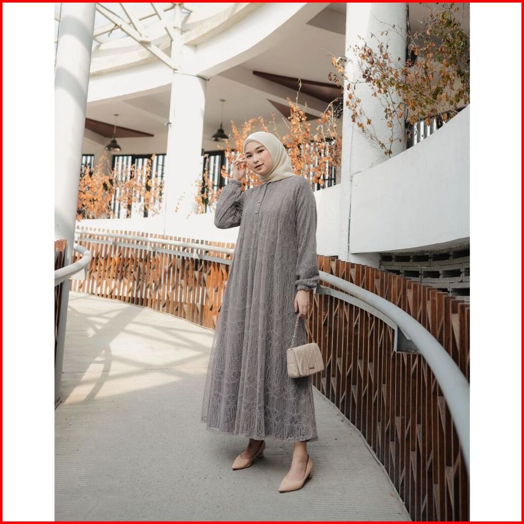 Mayumi Dress Busui Friendly Brukat Mix Chantily Full Gaun Pesta Busui Mewah Gamis Full Chantily Eigma Mewah