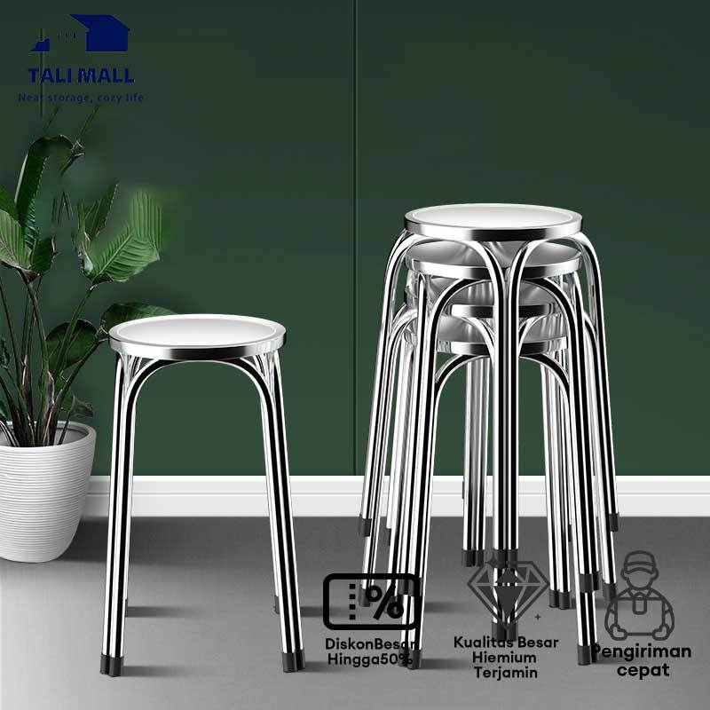 Kursi Bulat Stainless Steel Kursi Bakso Warung Kursi Anti Karat Kuat Steel Bangku Bakso Susun
