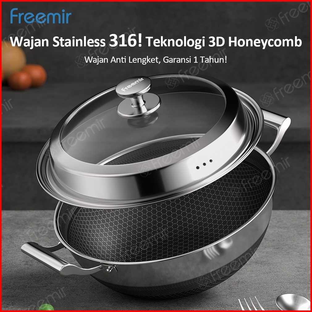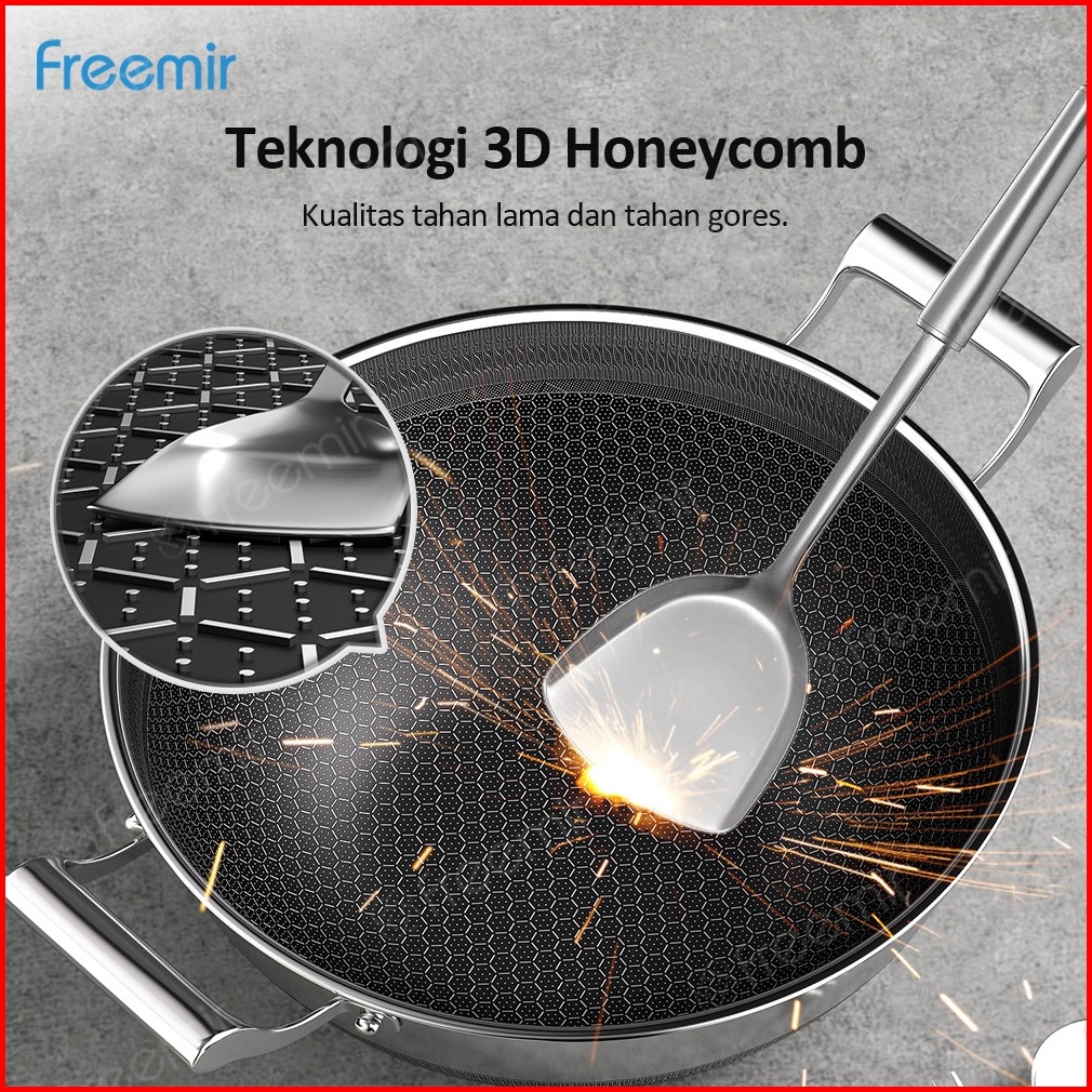 Freemir Wajan Honeycomb Sarang Lebah Sus 316 Panci Anti Lengket Anti Karat Sehat Premium