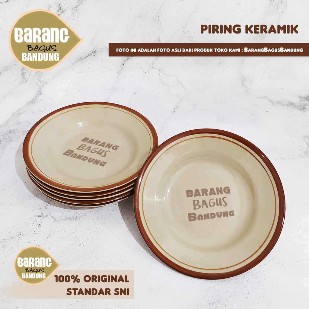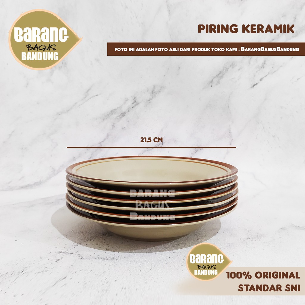 (satuan)KURIR INSTANT. Piring Makan Keramik 8” List Coklat / Biru / Hijau Ukuran 8 Inch