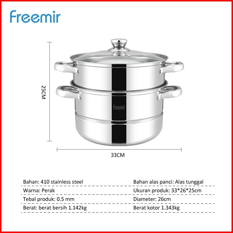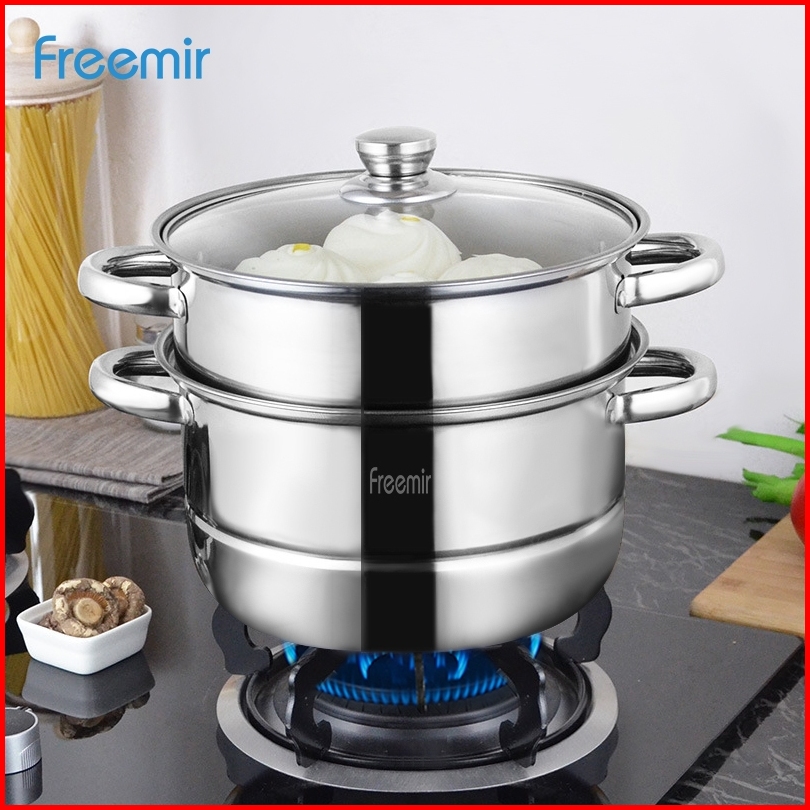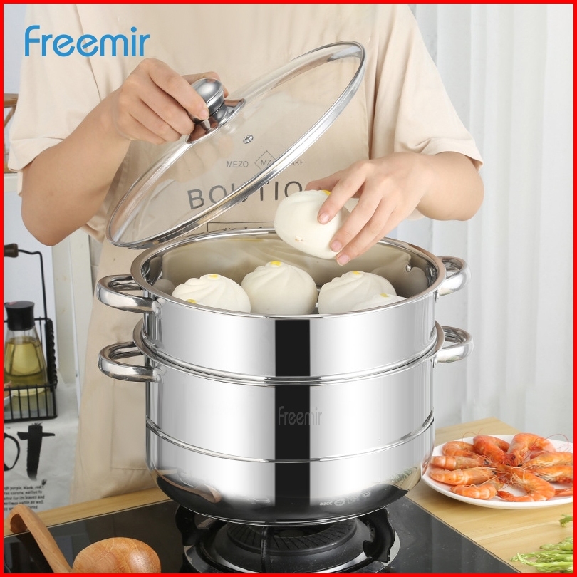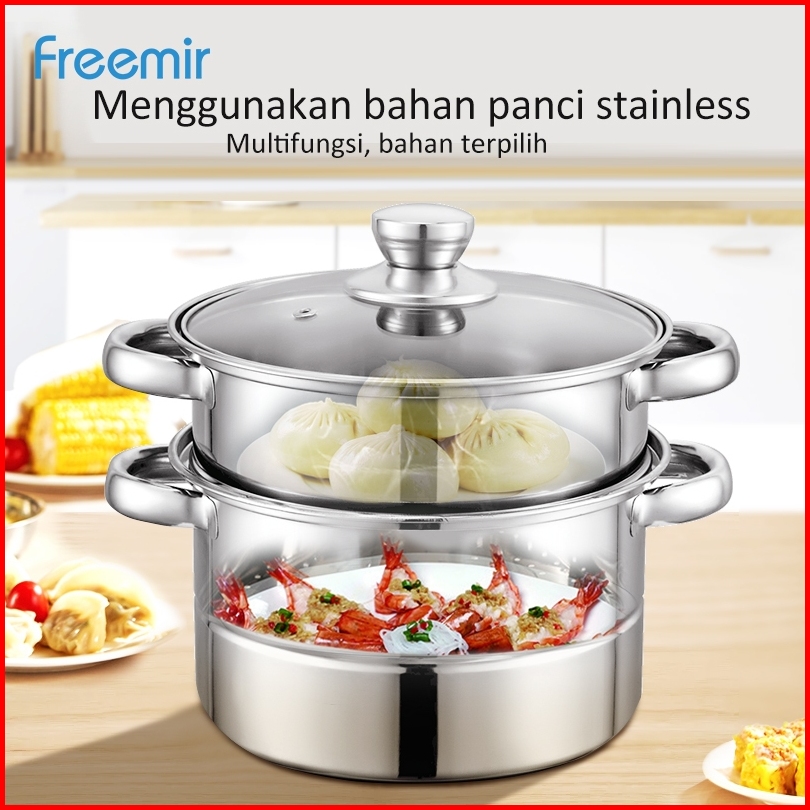 Exclusive Kyanavara Harga Spesial Freemir Panci Kukus Dan Tutup Kaca 2 3 Tingkat Steamer Panci Kukus Stainless Steel Pan