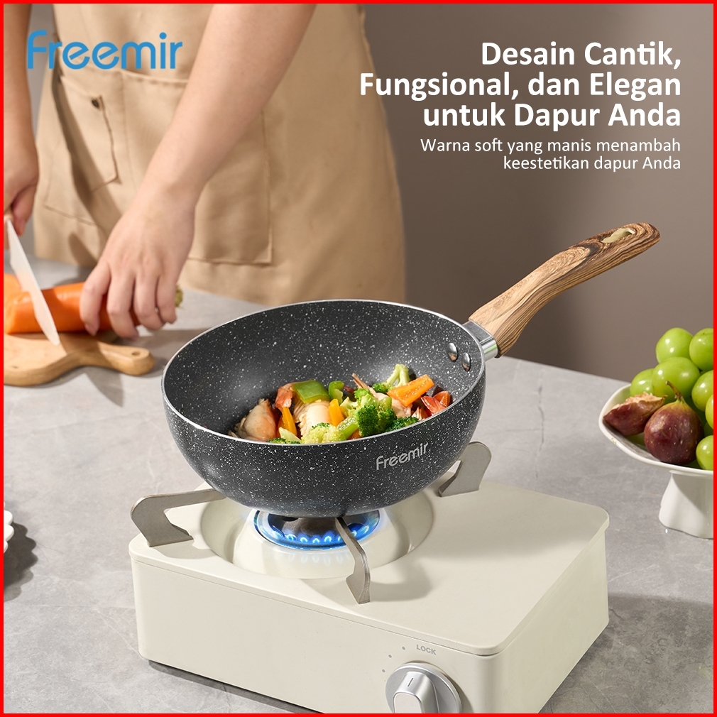 Freemir Wajan Pengggorengan 20 Cm Anti Lengket Warna Beige