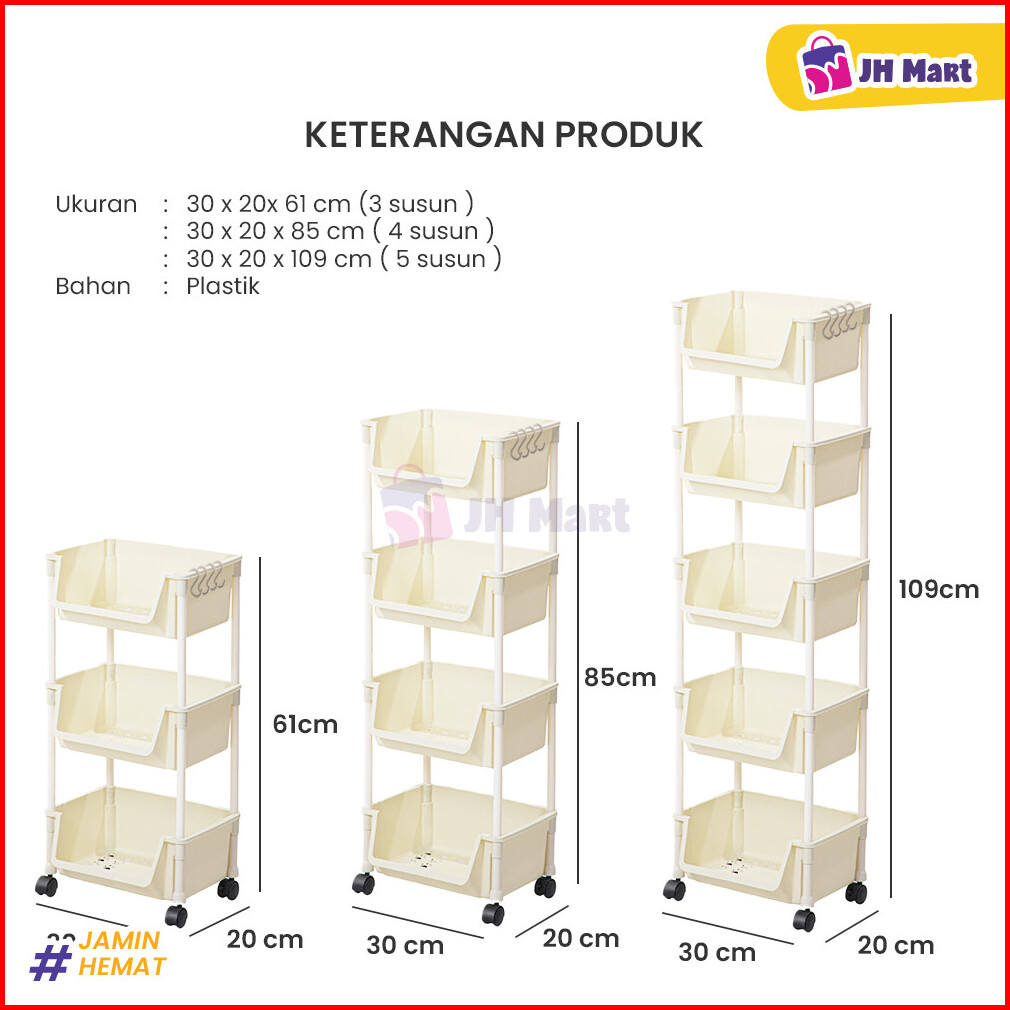 Jhm - Rak Dapur Troli Roda Dorong Serbaguna 3 4 5 Susun Tingkat Berkualitas