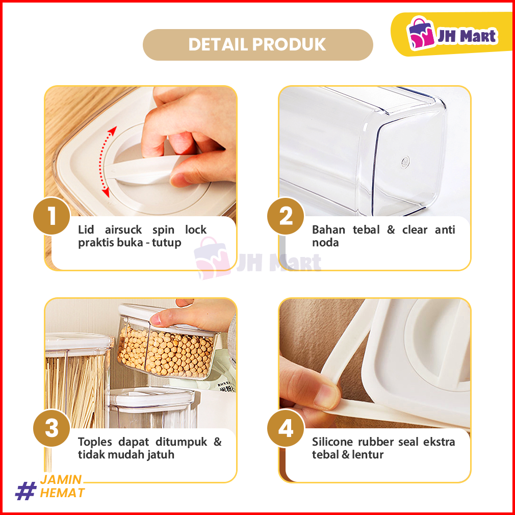 Jhm - Toples Kedap Udara Tempat Bumbu Dapur Makanan Kering Plastik Tight Lock