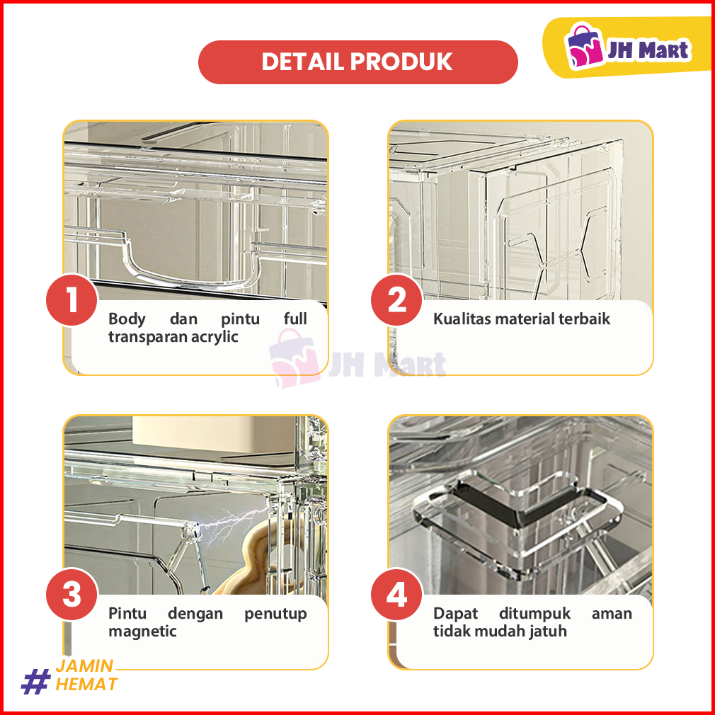 Jhm - Box Akrilik Rak Sepatu Lemari Transparan Organizer Premium