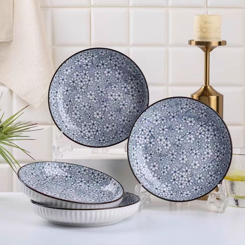 Piring Keramik Yamada Plate 8 Inch & 7 Inch/ 18 & 20 cm Cekungan Porcelain Berkualitas