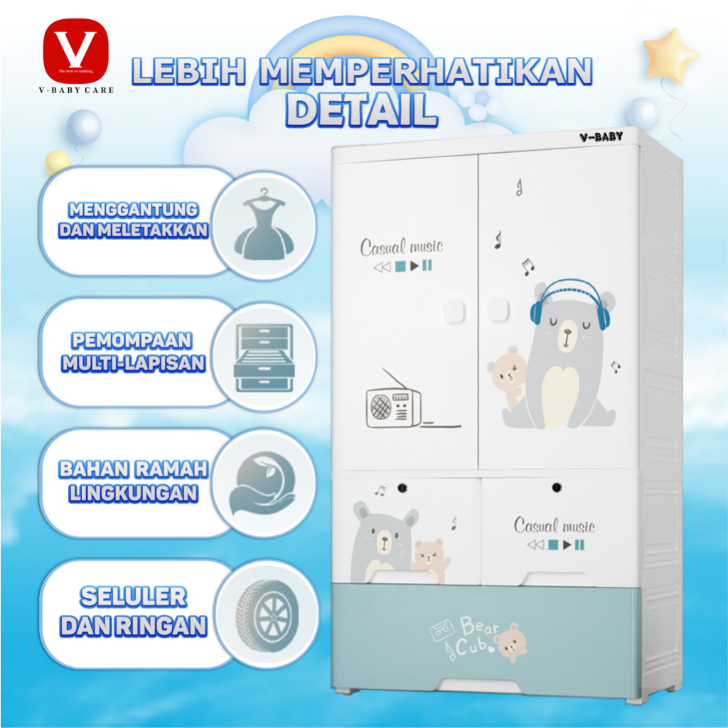V-BABY CARE - Lemari Pakaian Anak 65CM / Lemari bayi Plastik / Plastic Storage Cabinet Lemari T6