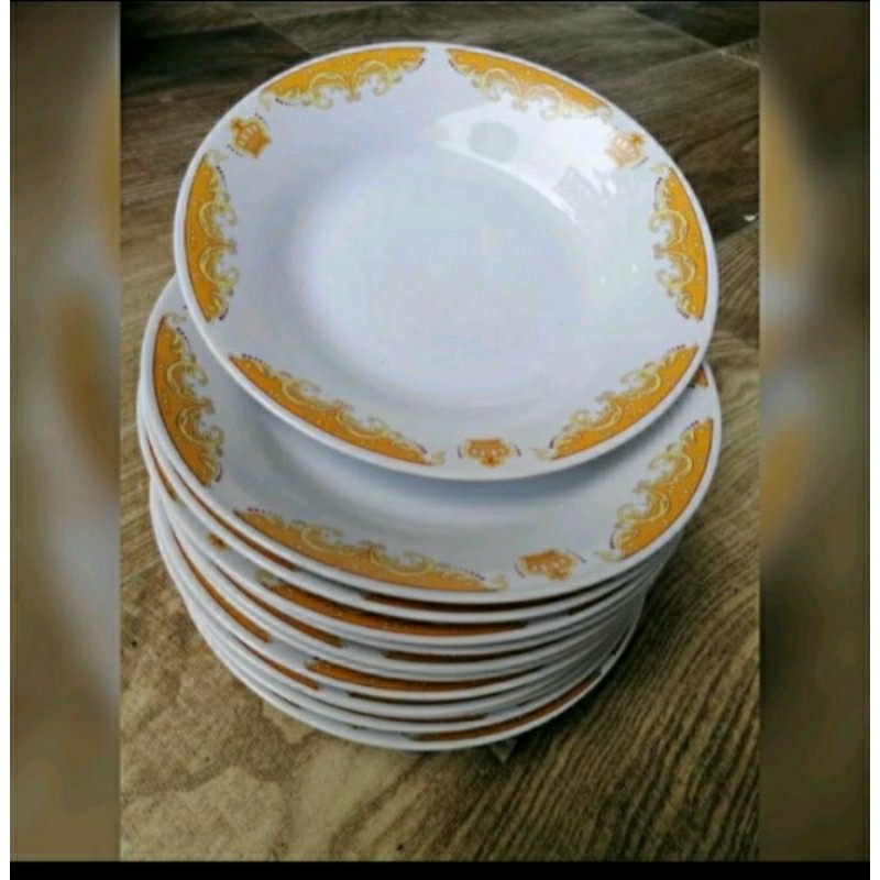 isi 6 pcs piring makan 9 dim cekung keramik 23cm motip mahkota piring makan perasmanan