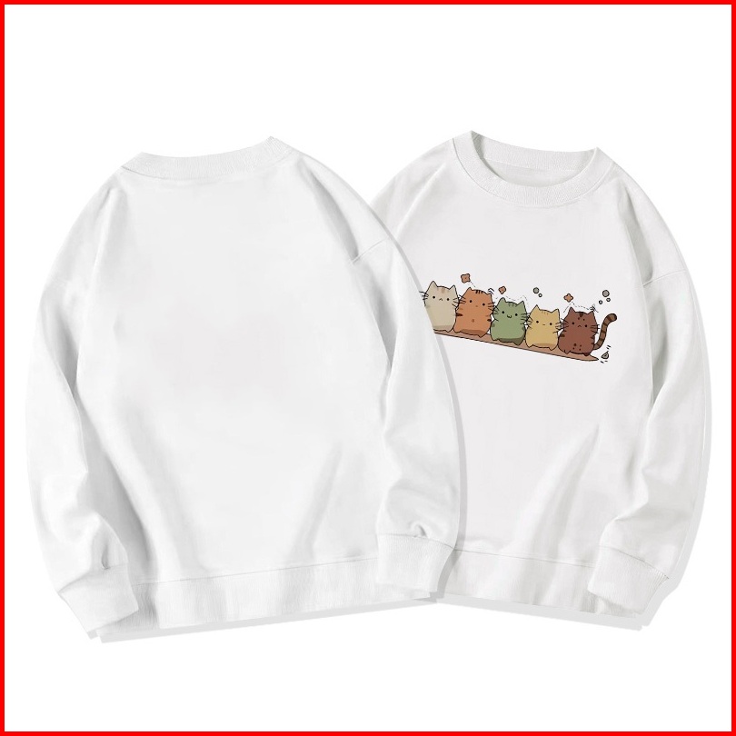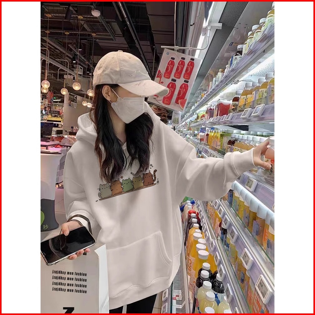 Forteid Couple Hoodie Sweater Wanita Oversize Cetakan Pola Kucing Lucu Korean Style Baju Wanita Kekinian Baju Wanita Swi