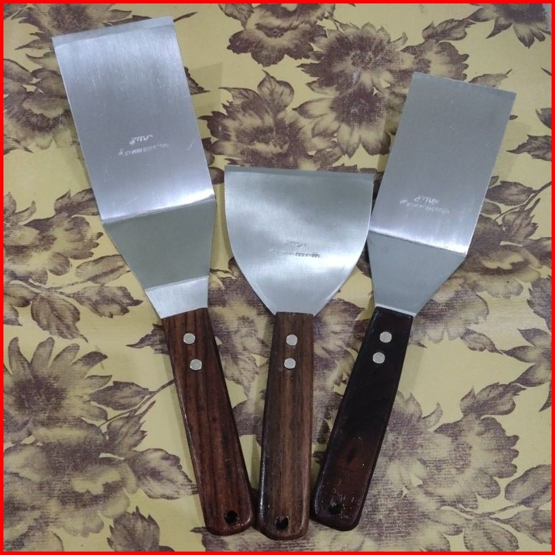 Spatula Stainless Anti Karat Untuk Roti Bakar Spatula Bengkok Kape Lurus