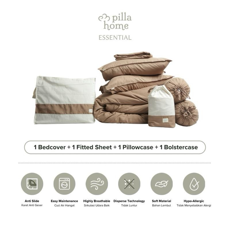 Bedcover Set 100X200 Pilla Home Essential Sprei Tinggi 30Cm + Bed Cover 155X235 | 100 Halus Katun Single Homemade Anti G