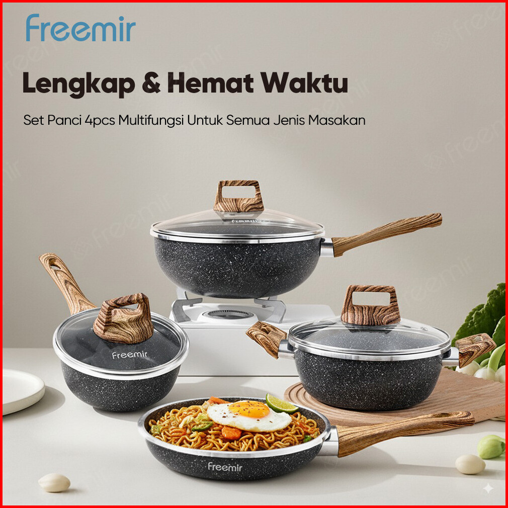 Freemir Set 7 Pcs Wajan Panci Ukuran Lengkap Dengan Tutup Anti Lengket Marble Lapisan Granit