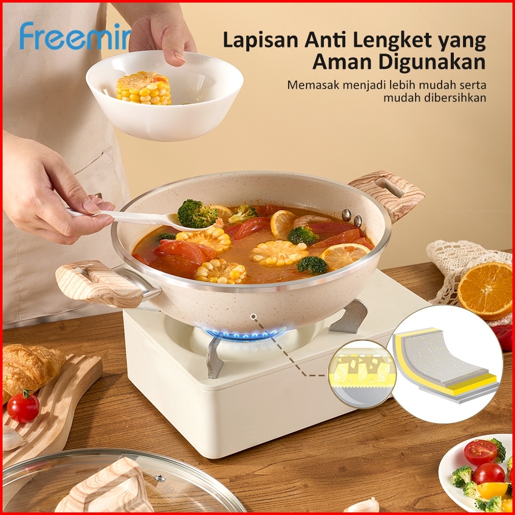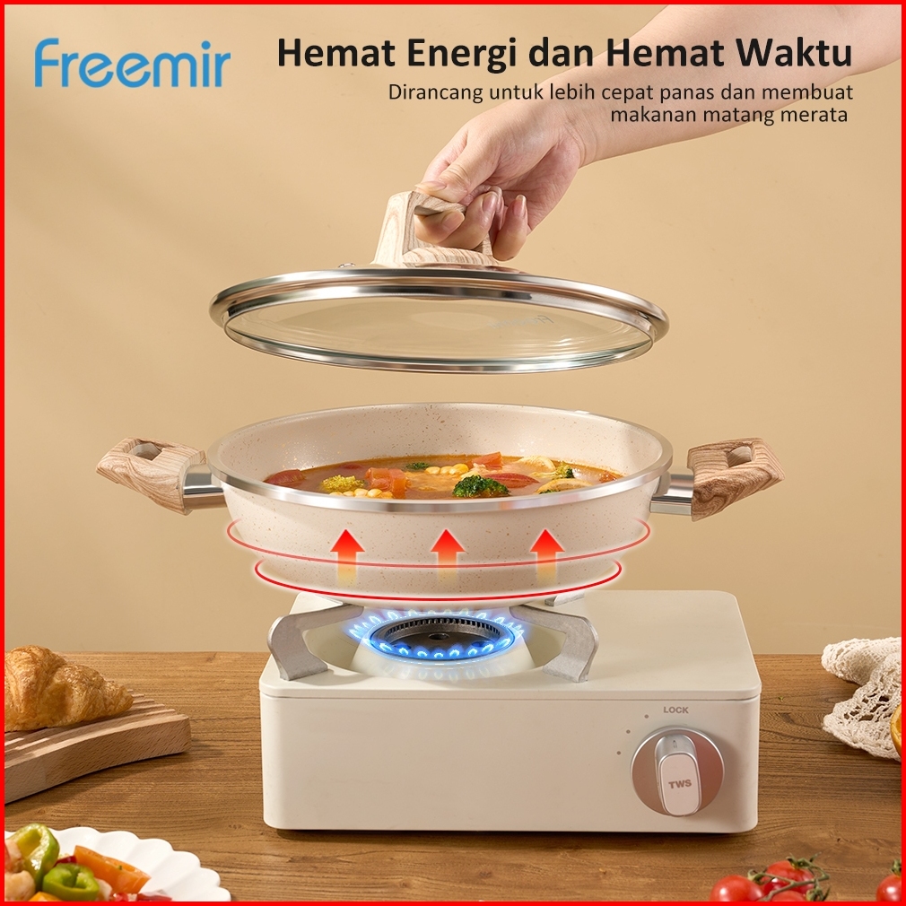 Special Freemir Wajan Panci Penggorengan Beige Granit Anti Lengket 24cm Tinggi 7.5cm Serbaguna