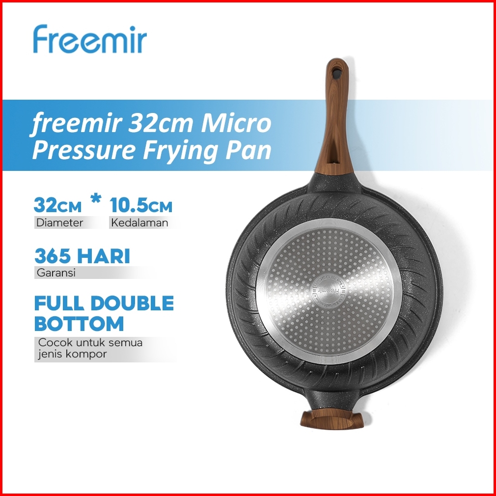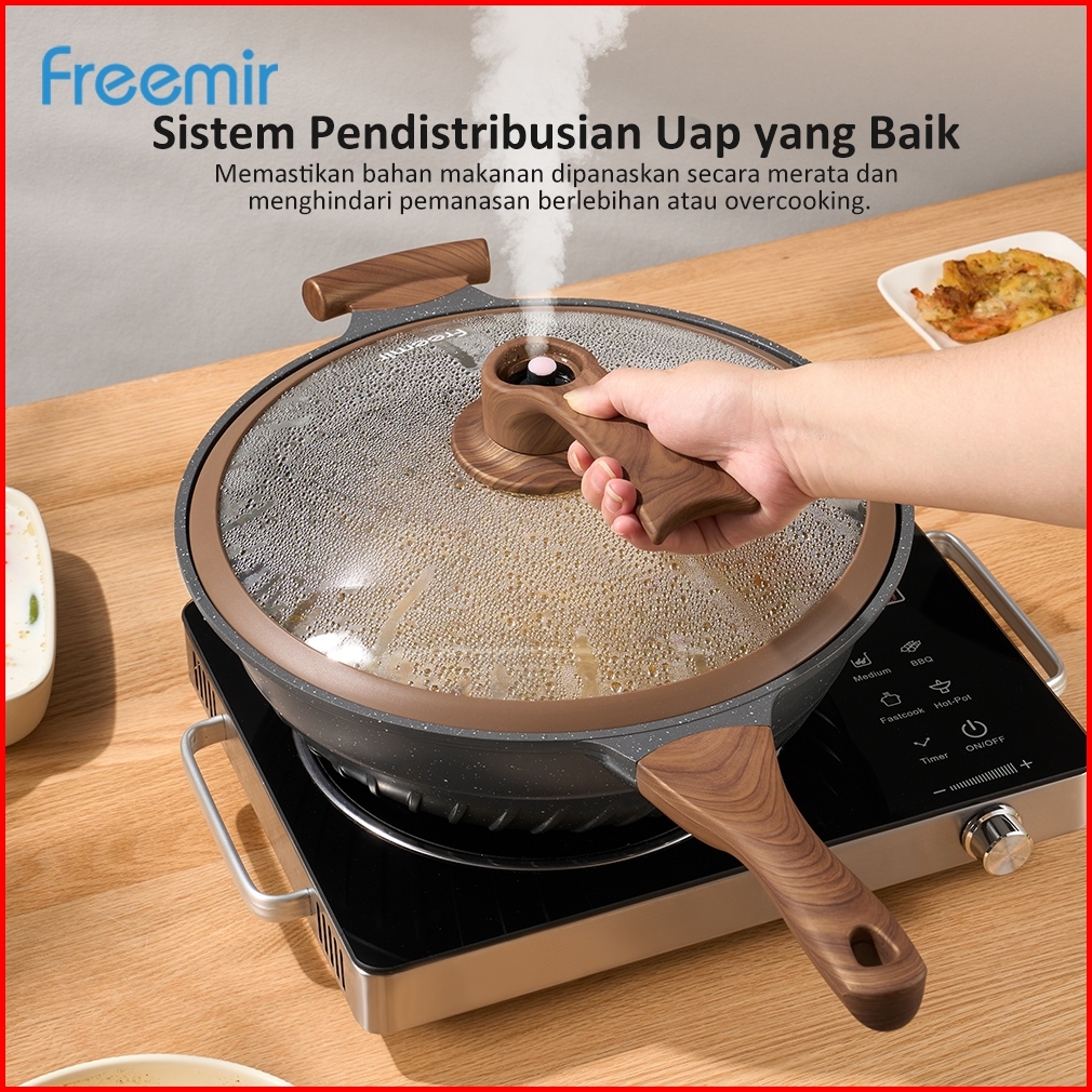 New - Garansi 2 Tahun Freemir 32cm Die-cast Wokpan Vya Micro Pressure Series-with Composite Bottom Frying Pan Brown Lapi