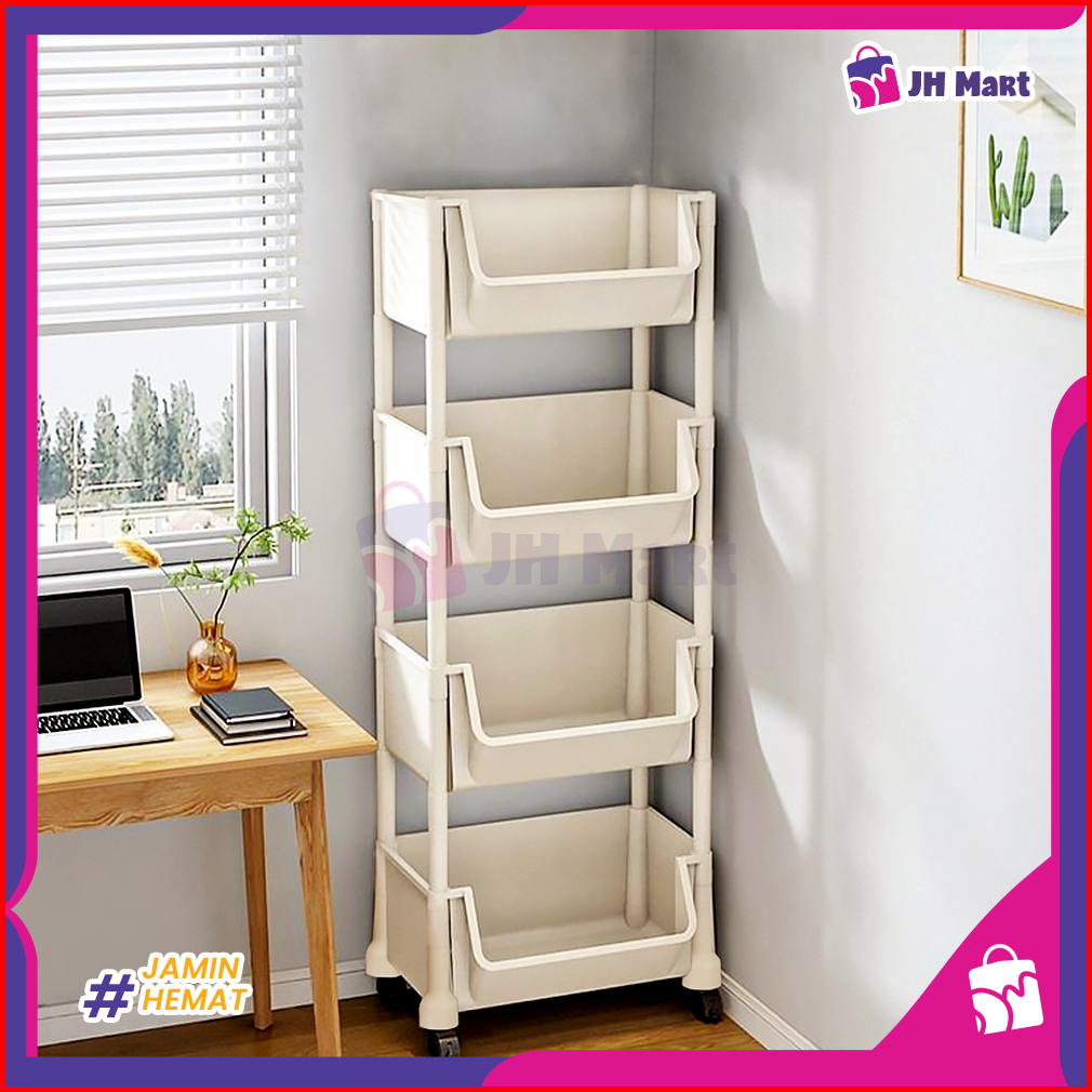 Jhm - Rak Dapur 5 Susun Dengan Roda Dorong Bahan Plastik Tebal Serbaguna