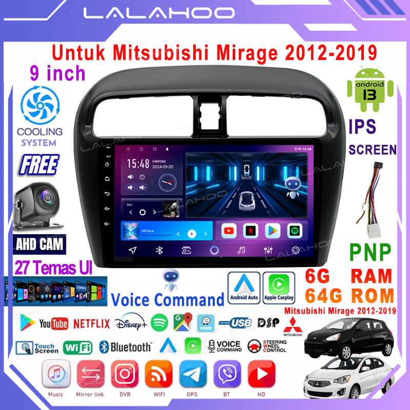 【Untuk Mitsubishi Mirage 2012-2019】6G+64G Android 13 Head Unit Termasuk Frame/PNP Soket 9 Inch IPS