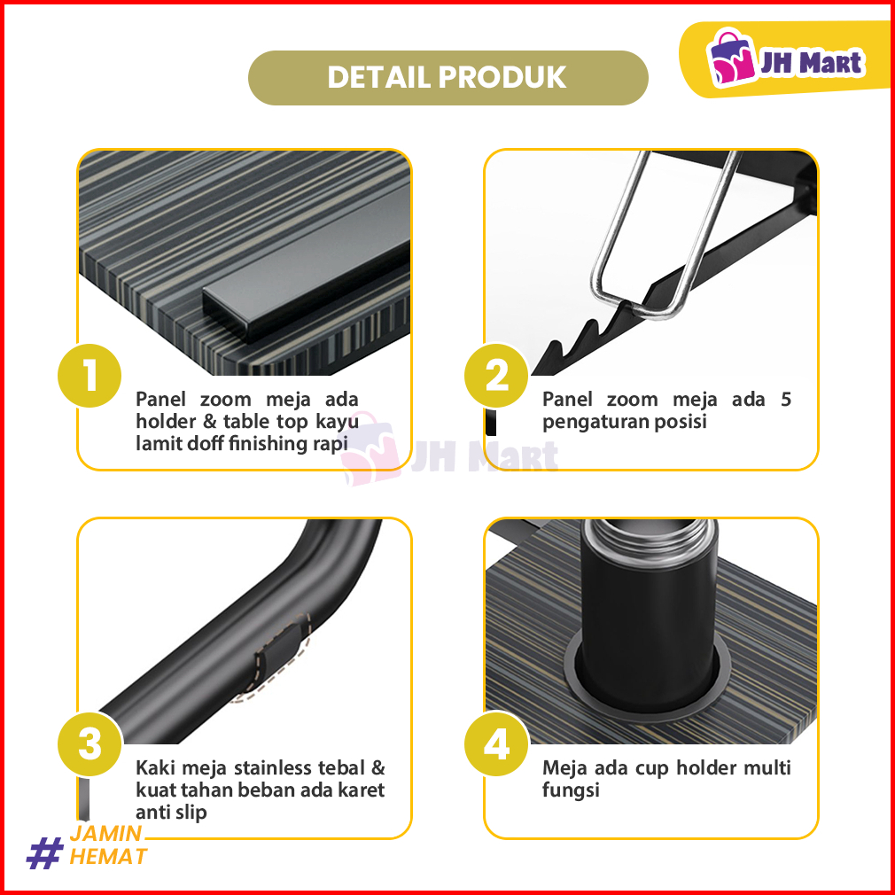 Jhm - Meja Laptop Lipat Portable Bahan Kayu Hpl Foldable Desk Zoomer Berkualitas