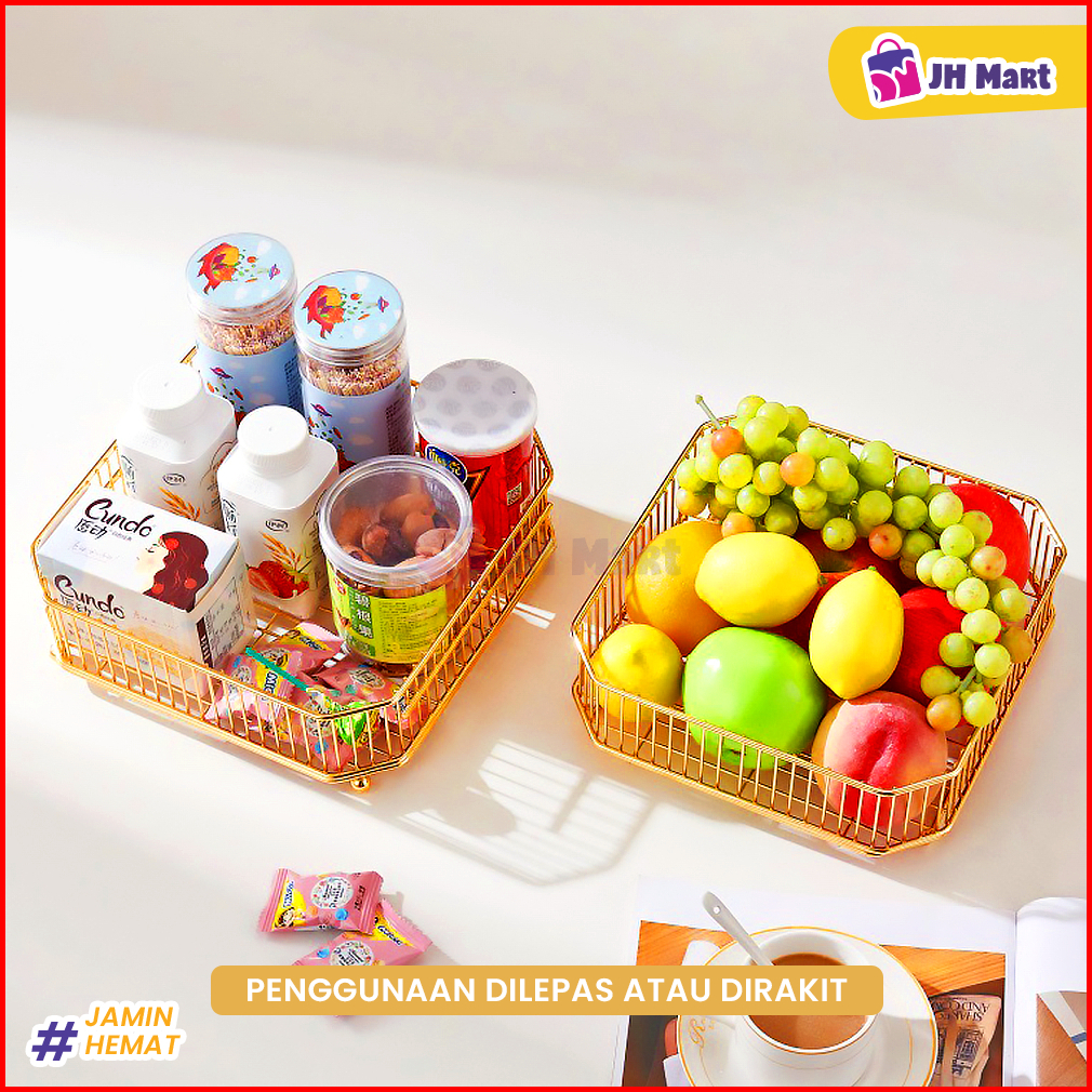 Jhm Rak Serbaguna 2 Tingkat Estetik Tempat Buah Kosmetik Permen Bahan Besi Elegan